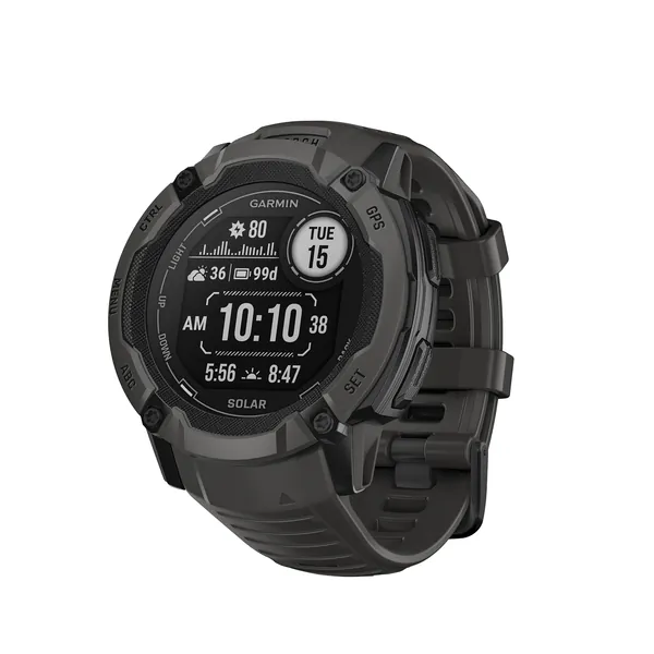 • Bold, rugged GPS smartwatch is built to U.S. MIL-STD 810 for thermal, shock, and water resistance and has a large solar-charged display and durable 50 mm polymer case;• Solar charging--Power Glass(TM) lens extends battery life, producing 50% more energy than the standard Instinct(R) 2 solar watch;• Infinite battery life in smartwatch mode when exposed to 3 hours of direct sunlight (50,000 lux) per day;• Built-in LED flashlight with variable intensities and strobe modes gives you greater visibility while you train at night and provides convenient illumination when you need it ;• 24/7 health and wellness tracking helps you stay on top of your body metrics with wrist-based heart rate, advanced sleep monitoring, respiration tracking, Pulse Ox and more;• Smartwatch is not a medical device, and data presented is intended to be a close estimation of metrics tracked; Pulse Ox not available in all countries;• Gain a deeper understanding of your overall health, training, and recovery through heart rate variability while you sleep, based on technology developed by Garmin's Firstbeat Analytics(TM) team.;• Built-in sports apps for running, biking, swimming, strength training, and more, plus VO2 max and other training features;• Multi-band signal reception technology delivers more accurate positioning than single-band devices;• Navigate the outdoors with built-in sensors for 3-axis compass and barometric altimeter ;• Integrated torchlight feature with SOS strobe mode commands attention in emergency situations;• Live connected with smart notifications, Garmin Pay(TM) contactless payments, and Connect IQ(TM) app integration (compatible smartphone required);• Includes charging/data cable and documentation;• Graphite;