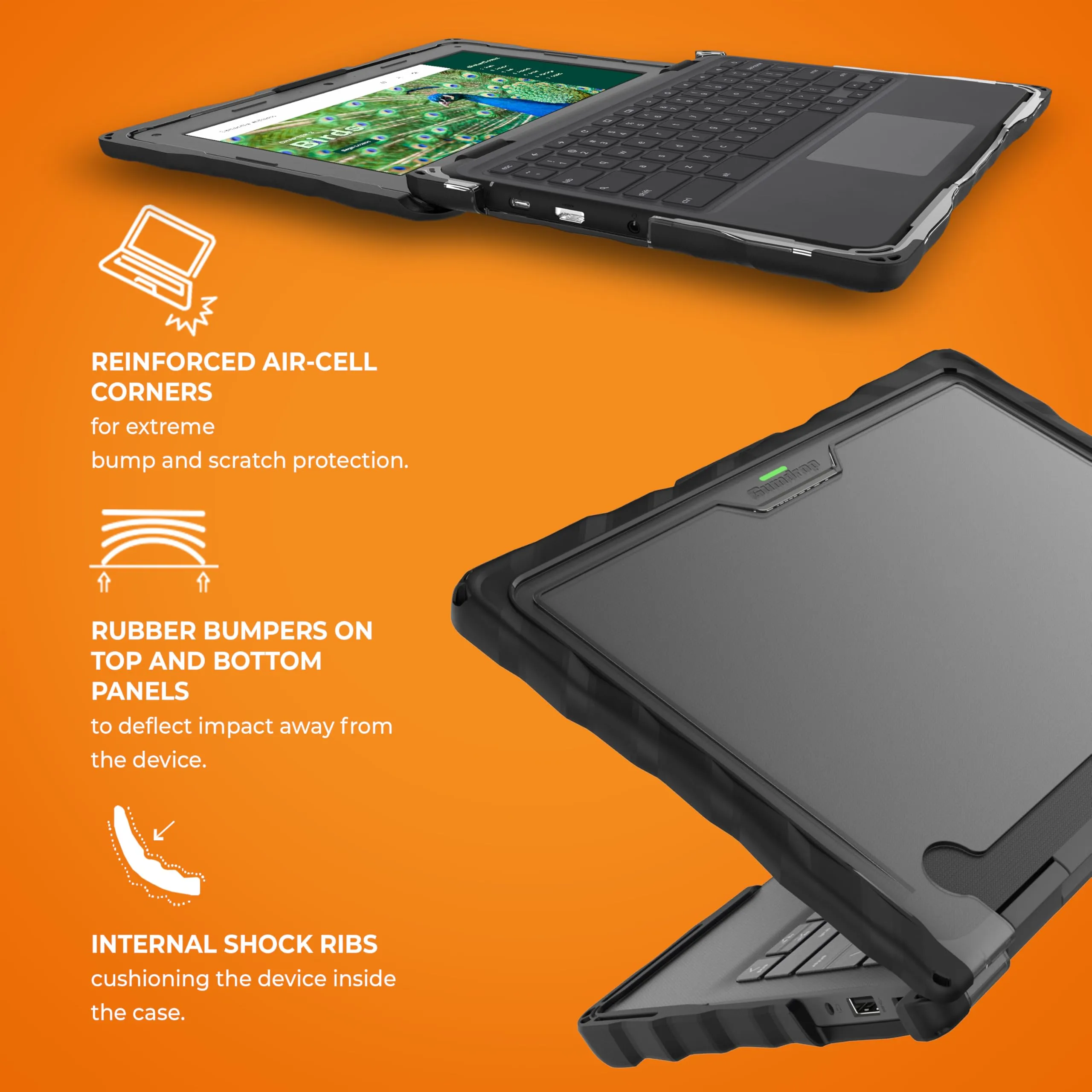 The DROPTECH Case for Dell Chromebook 3110/3120 provides robust protection for your device without sacrificing usability. Designed to withstand daily wear and tear, this case features enhanced shock absorption and a non-slip grip.