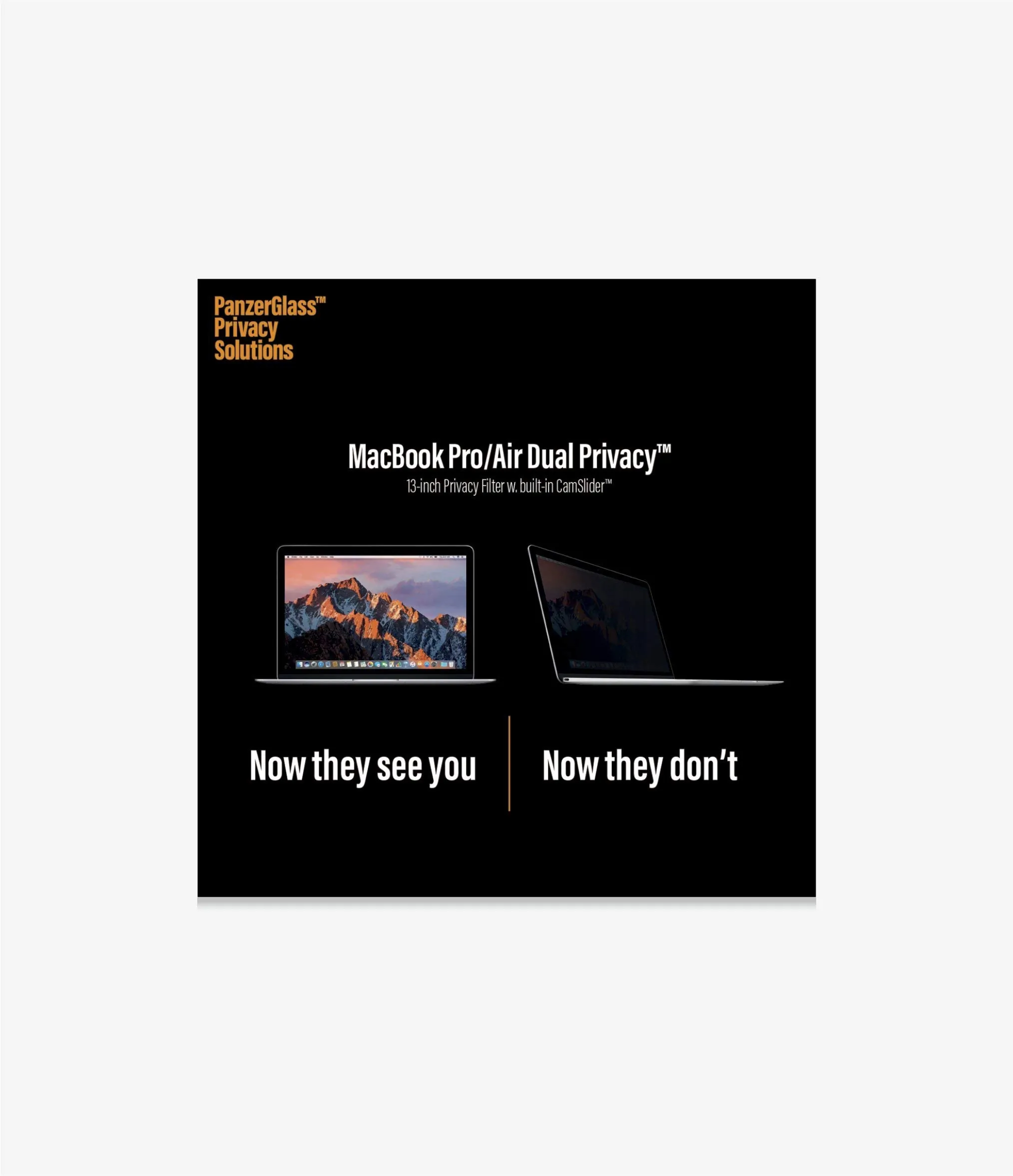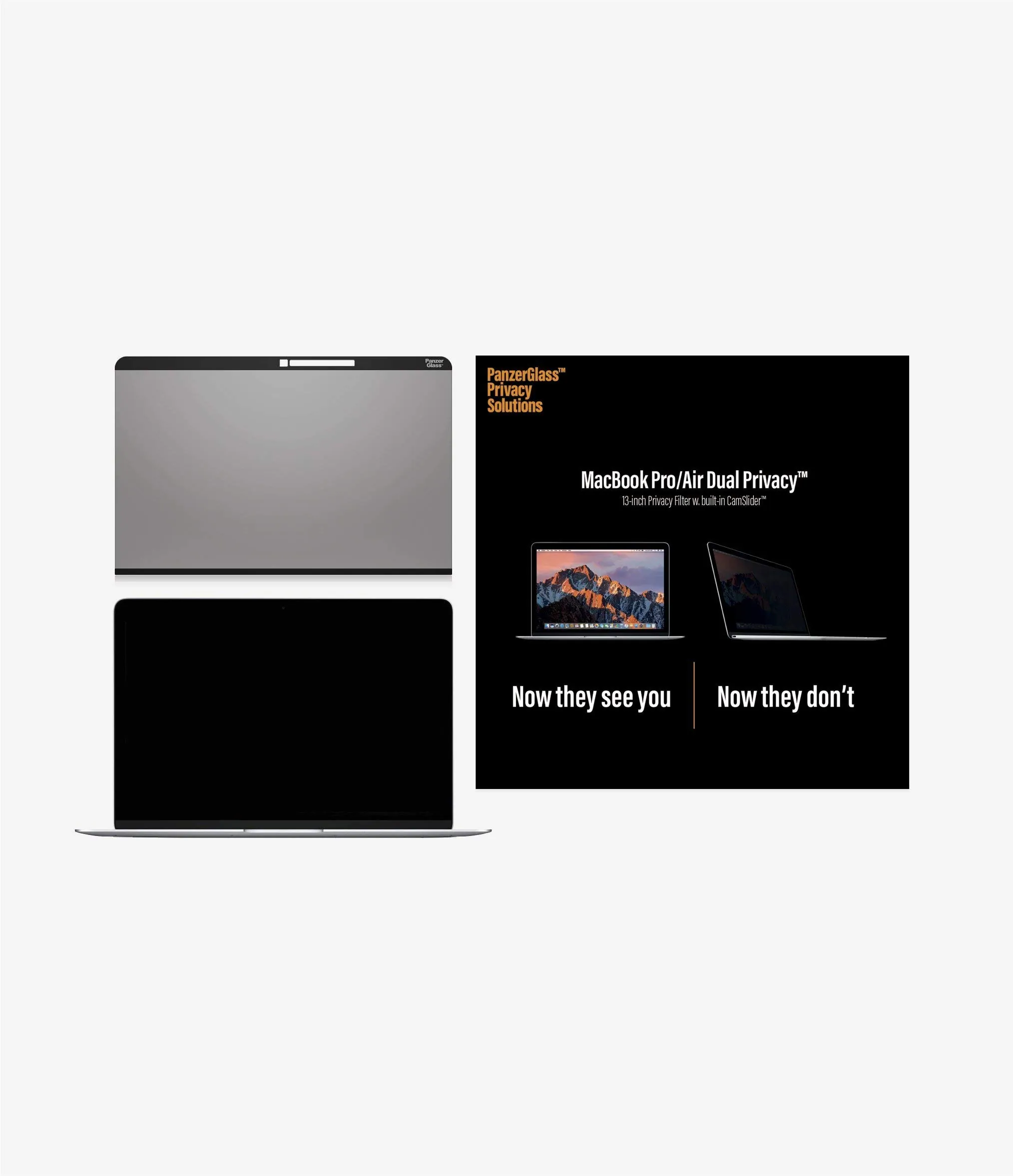 The PanzerGlass Privacy Screen for MacBook Pro/Air 13-inch offers essential protection and privacy. With its dual privacy feature, it restricts viewing angles to ensure your information remains confidential, making it the ideal accessory for both work and play.