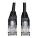 Tripp Lite's 10-ft. (3.05 m) black snagless category 5e (Cat5e) patch cable has 2 snagless RJ45 molded male connectors featuring integral strain relief. The cable is manufactured from PVC 4-pair stranded UTP and is rated for 350MHz/1Gbps communication. All cables are offered in a variety of lengths and colors for all category 5 (Cat5) and 5e cabling needs. Standard category 5e patch cables are also available.
