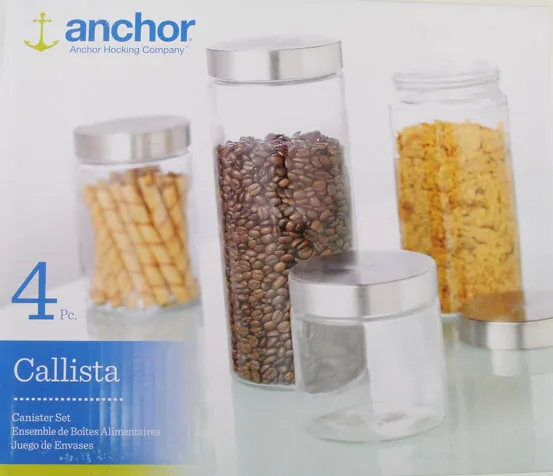 The Callista 4-Piece Glass Canister Set is the perfect storage solution for your pantry. This set includes four canisters in varying sizes, ideal for storing pasta, coffee, flour, and more. Each canister features a durable cylinder glass construction with brushed aluminum screw-top lids to keep your contents fresh.