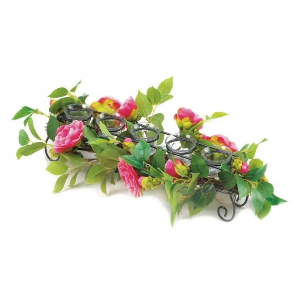 Featuring five glass candle cups, it allows you to showcase your favorite candles while the beautifully crafted faux leaves and flowers add a year-round seasonal charm.