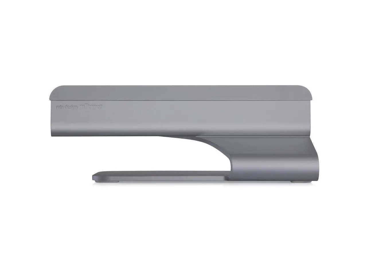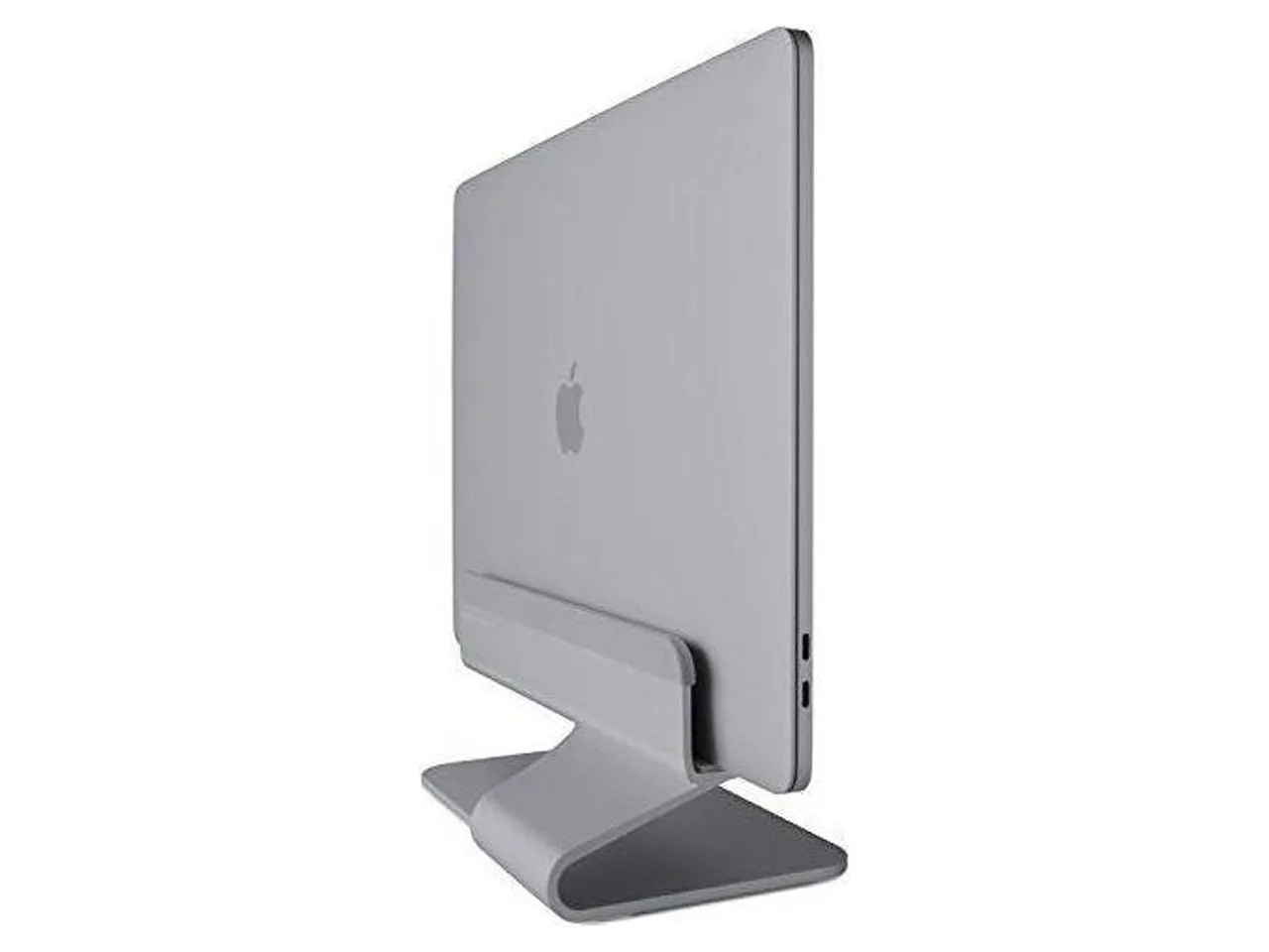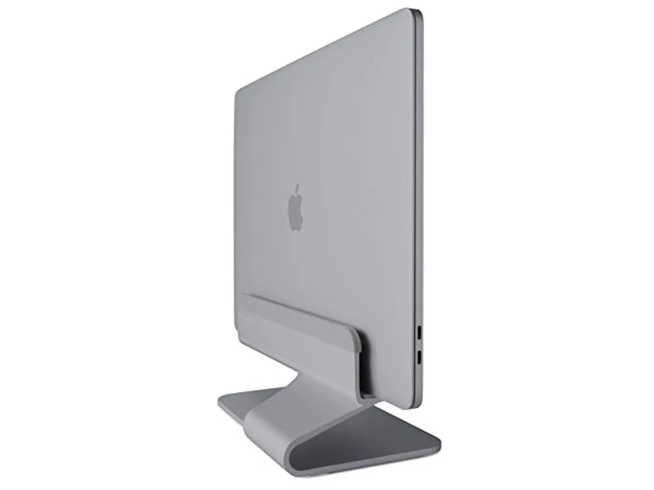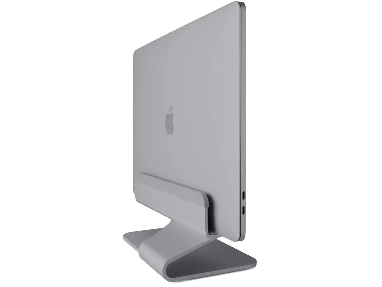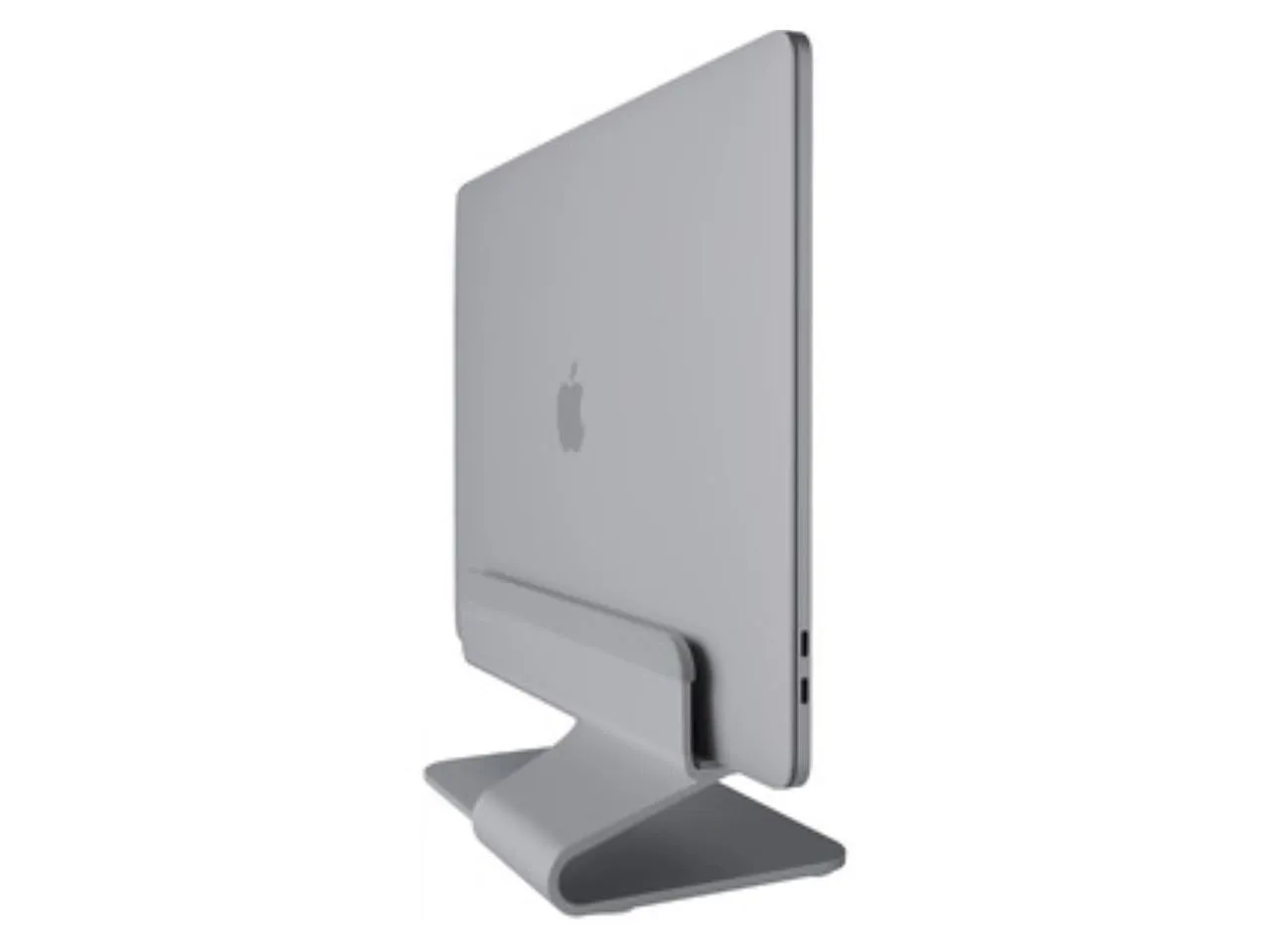 The Vertical Laptop Stand is designed to hold your laptop securely while saving desk space. Its sleek space grey finish complements any workspace décor, making it an essential accessory for professionals and students alike.