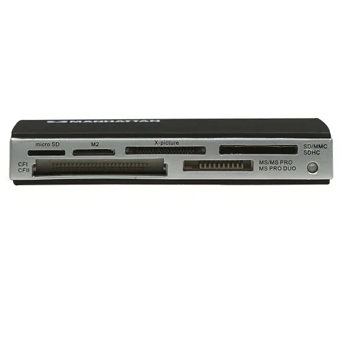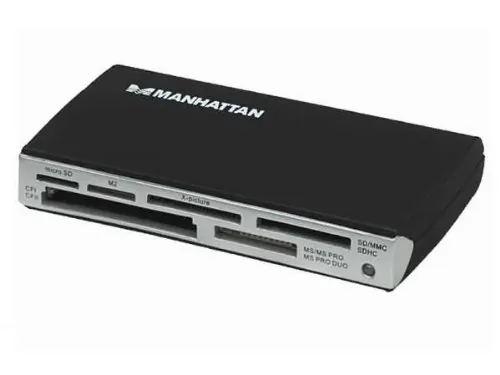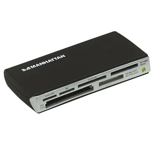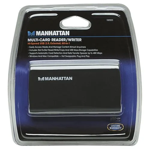 The MANHATTAN 60-in-1 Hi-Speed USB 2.0 Multi-Card Reader is a versatile and efficient device designed to read and write from multiple memory card formats. With its sleek black exterior, this external card reader offers a reliable solution for transferring data quickly and easily.