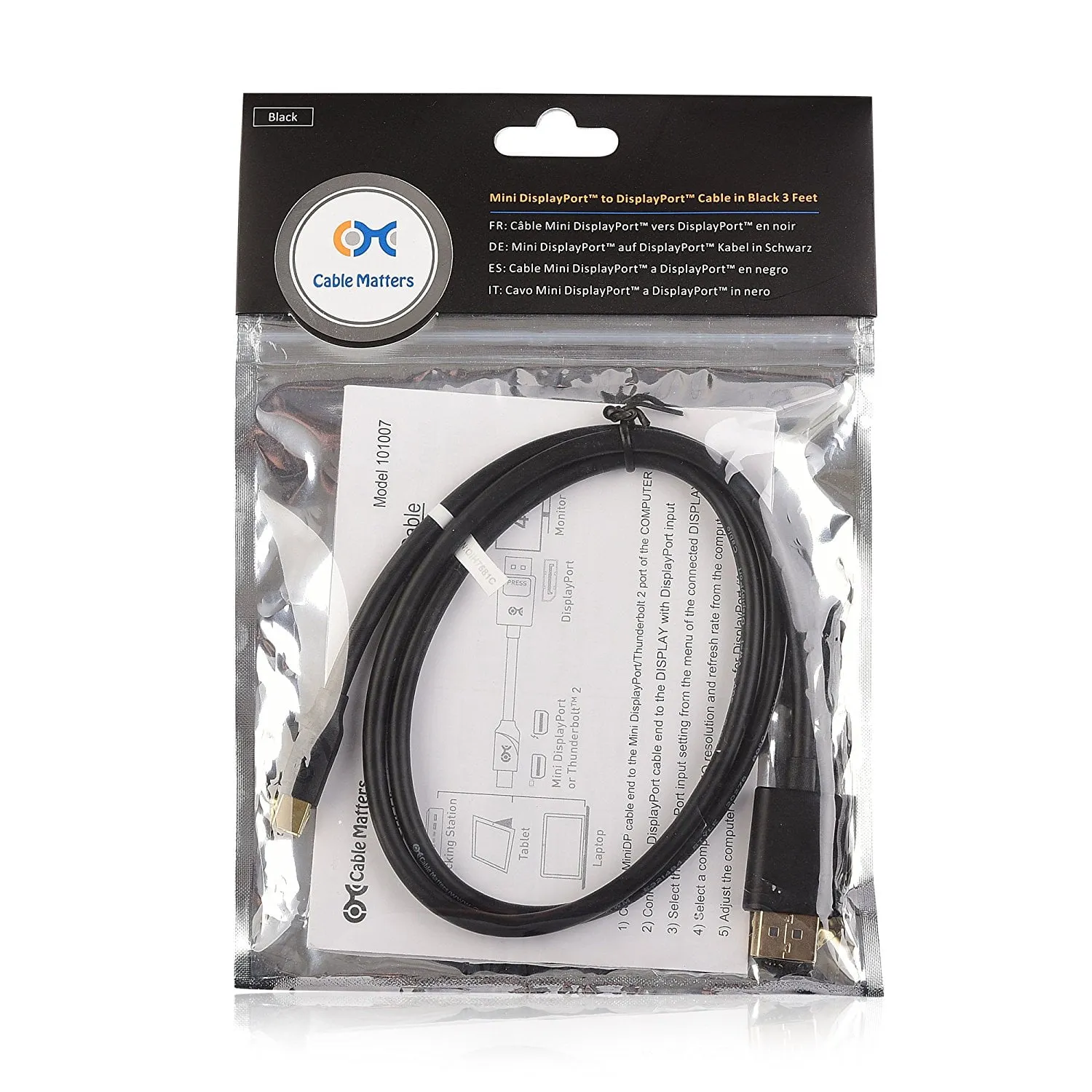 3 FT Mini DisplayPort to DisplayPort Cable - Black