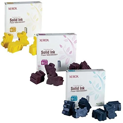 ColorStix Solid Ink Sticks produce brilliant, vibrant prints on a wide range of media with 90 percent less waste. Drop-in loading of solid ink sticks is as easy as loading a stapler. You will not have to unpack, shake, slide in, pull out and dispose of. No mess solid ink sticks are safe and clean to handle. You will also save storage space because the packages of solid ink sticks are small enough to fit into a desk drawer. Ink sticks are designed for use with Xerox Phaser 8860MFP and 8860. Each ink stick yields approximately 2,333 pages.