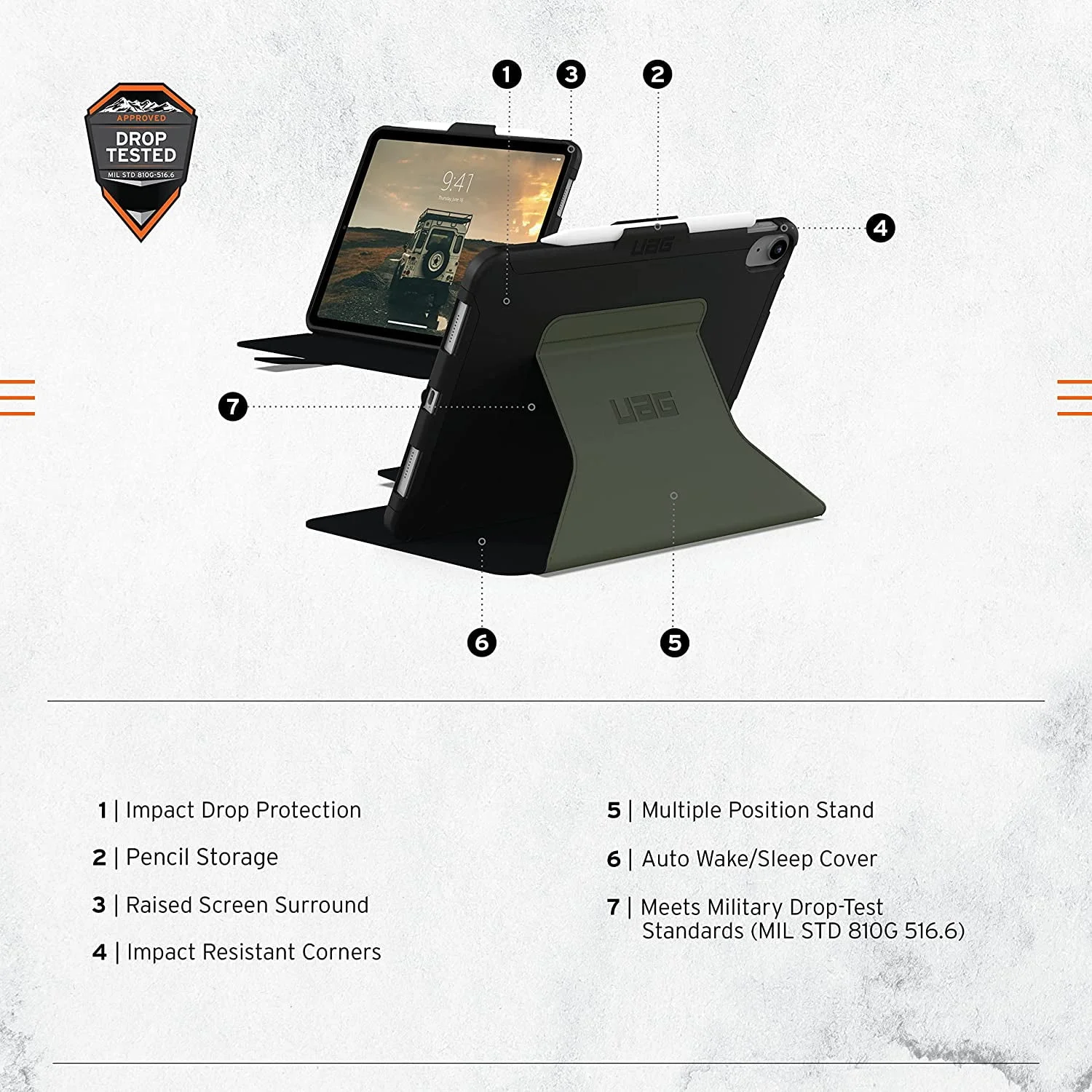 The UAG Scout Rugged Folio Case for the iPad 10.9-inch 10th Generation provides heavy-duty protection without compromising style. With a sleek black and olive design, this case is perfect for those who want durability and elegance.