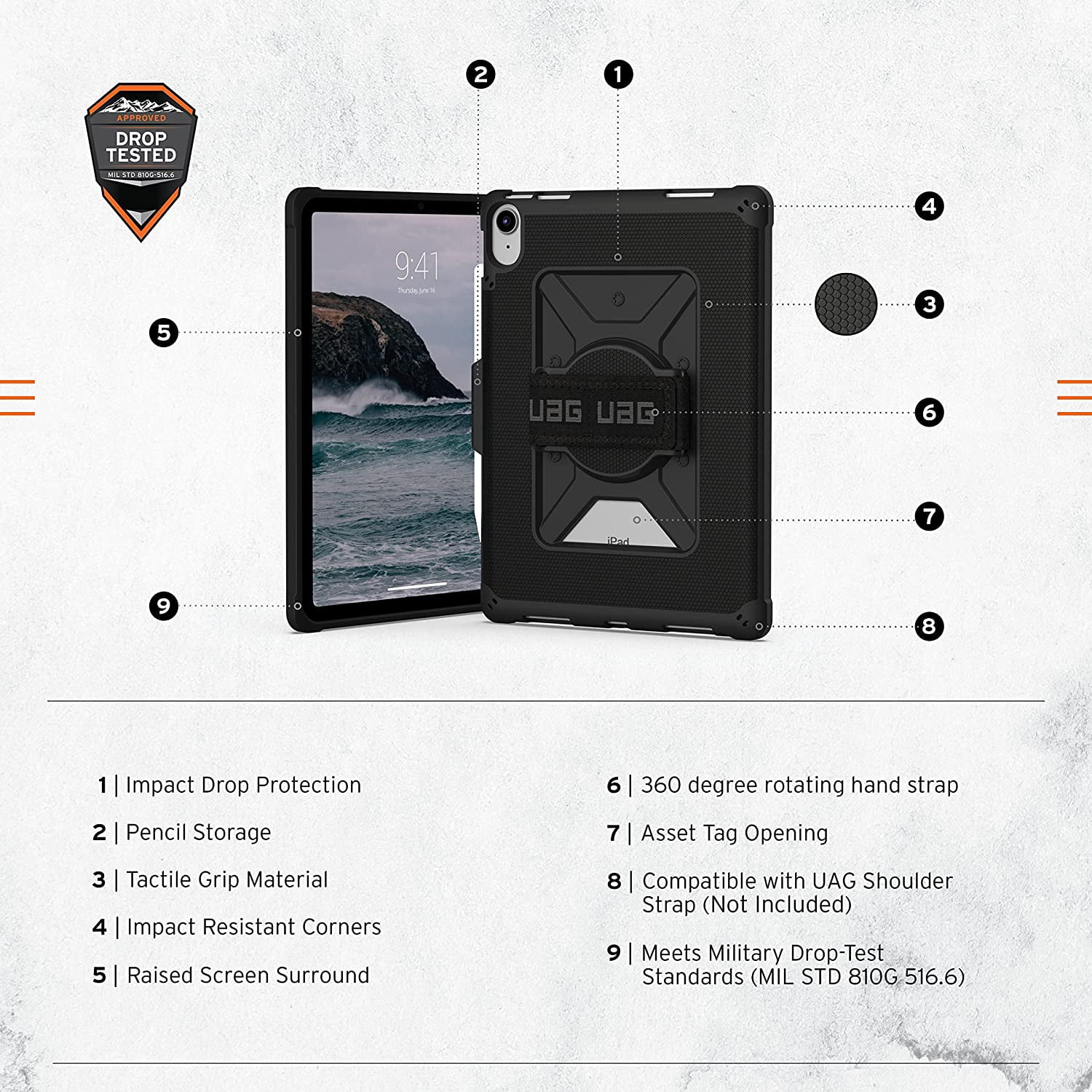 • Impact-resistant outer shell