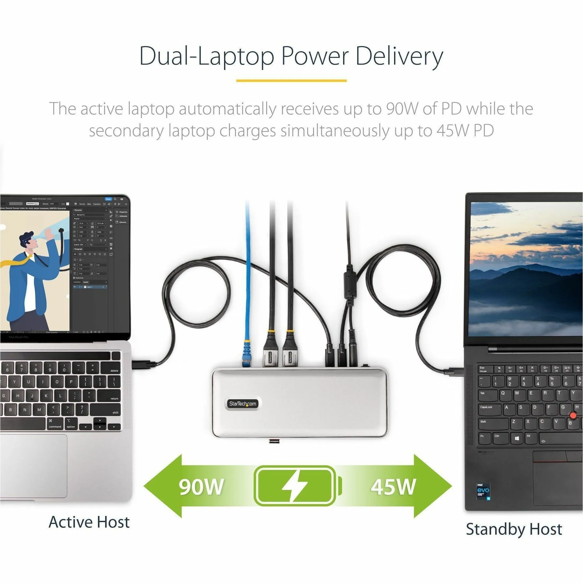PORT USB HUB, GBE, 90W/45W PD TO TWO LAPTOPS, DUAL HOST KVM DOCK