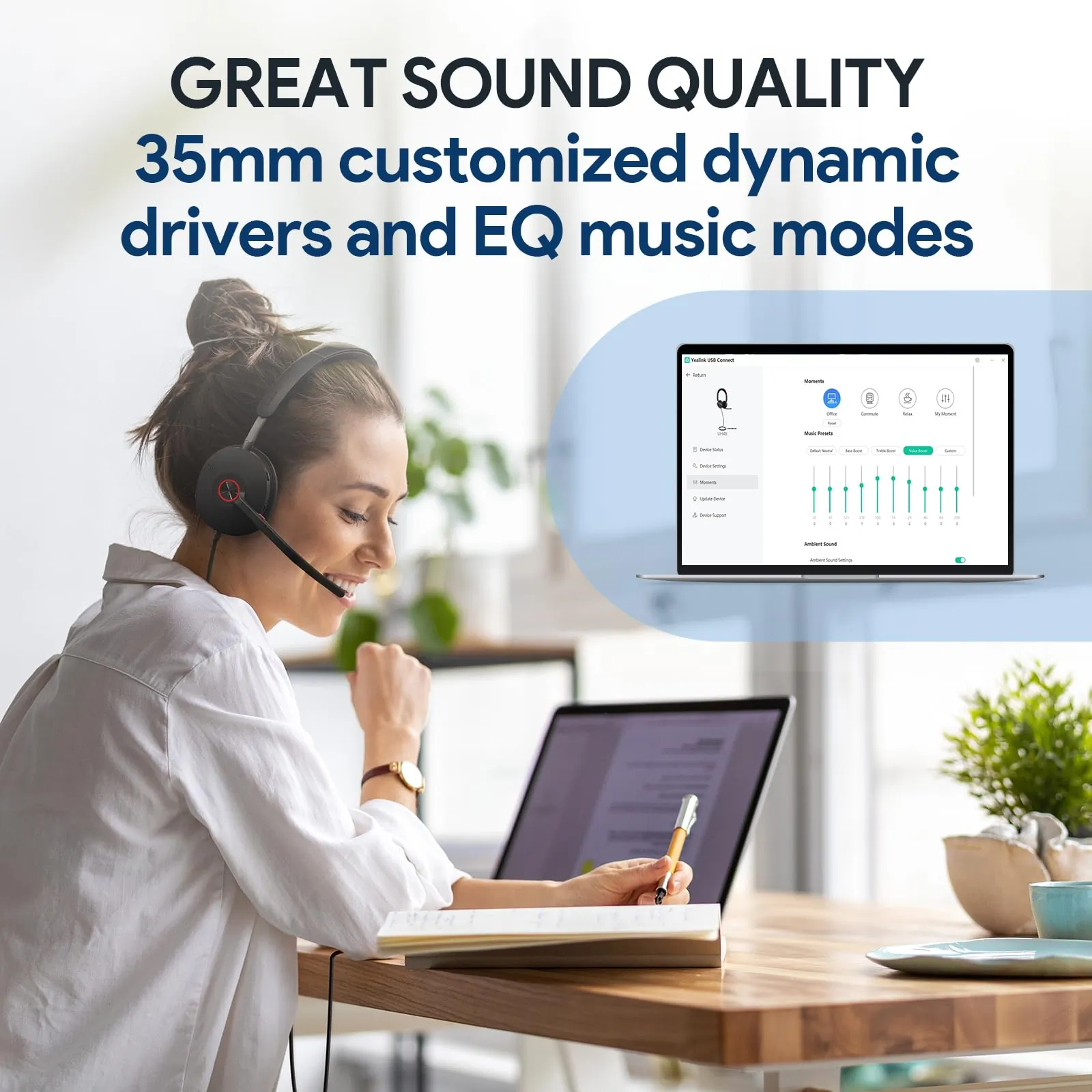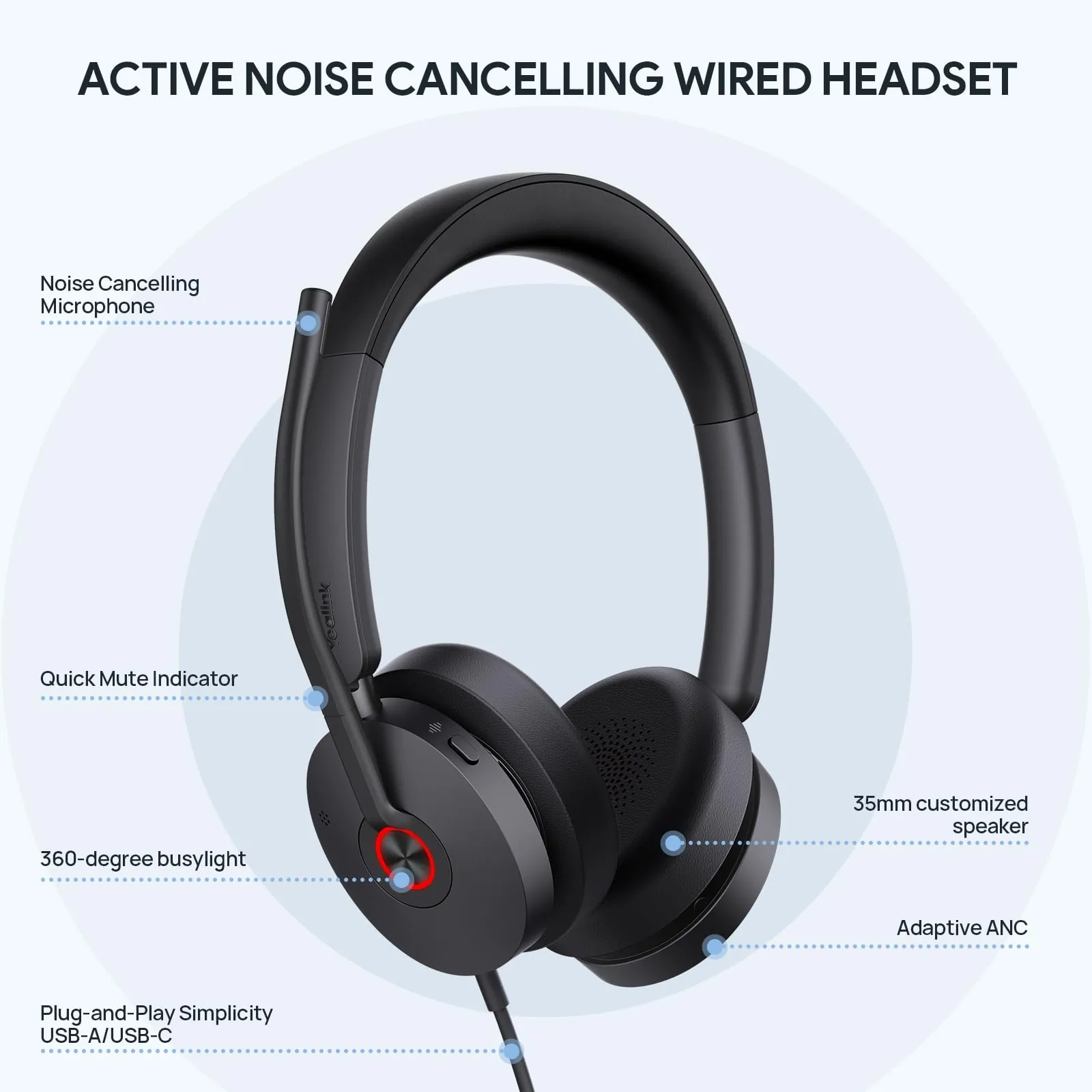 Its dual connectivity through USB-C and USB-A offers versatility for use with multiple devices. With comfort-focused design and intuitive controls, the UH48 is perfect for long hours of communication and collaboration.