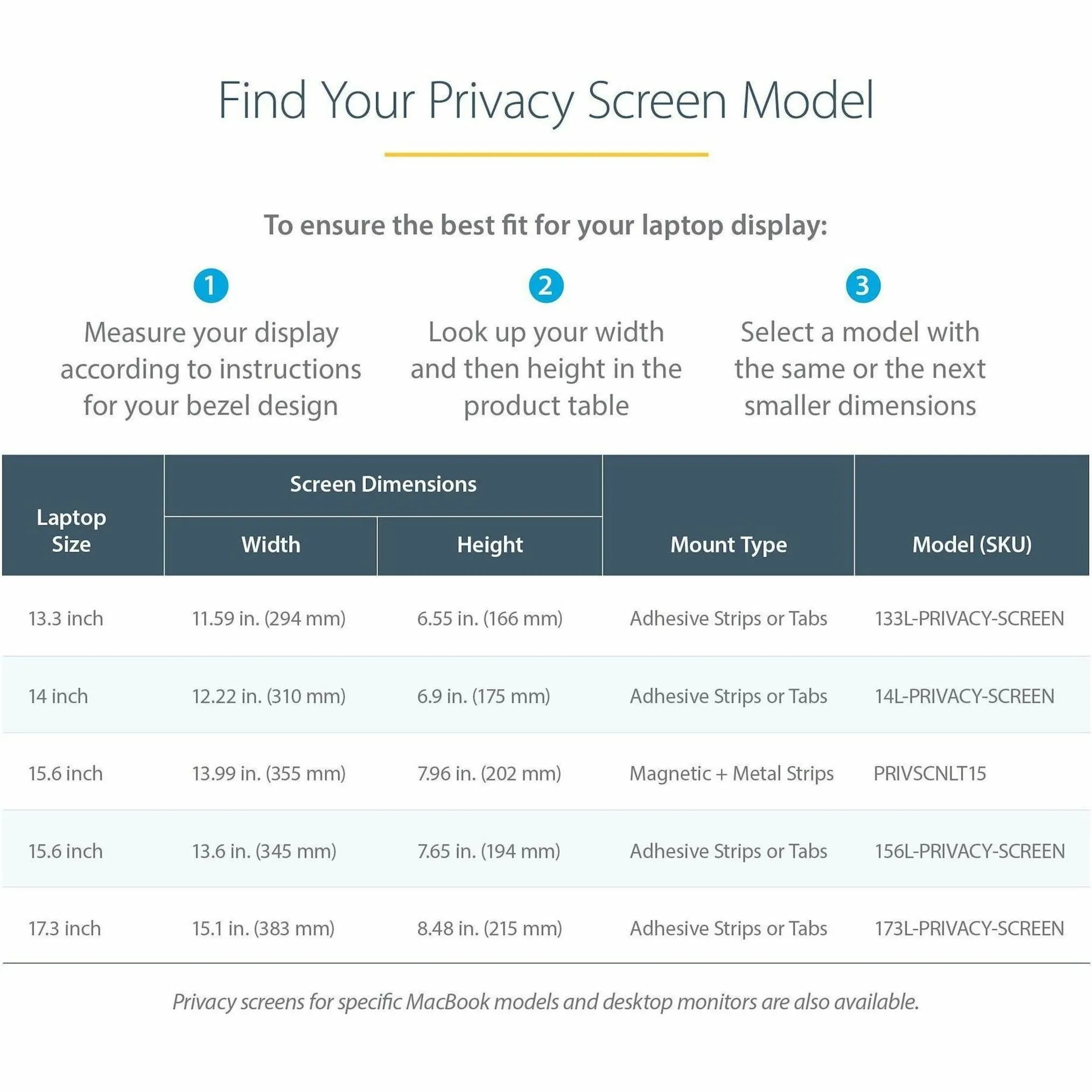 StarTech AC 133L-PRIVACY-SCREEN 13.3 Laptop Privacy Screen f 16:9 Displays