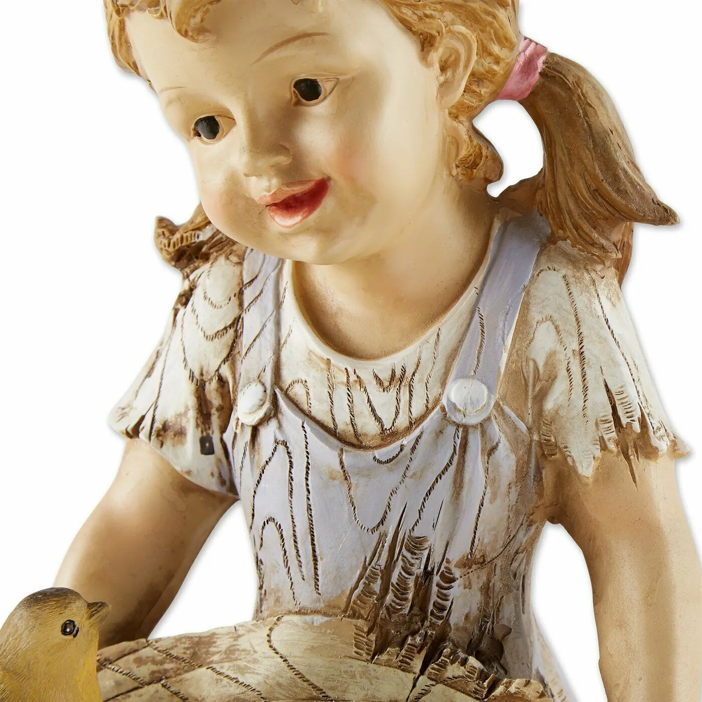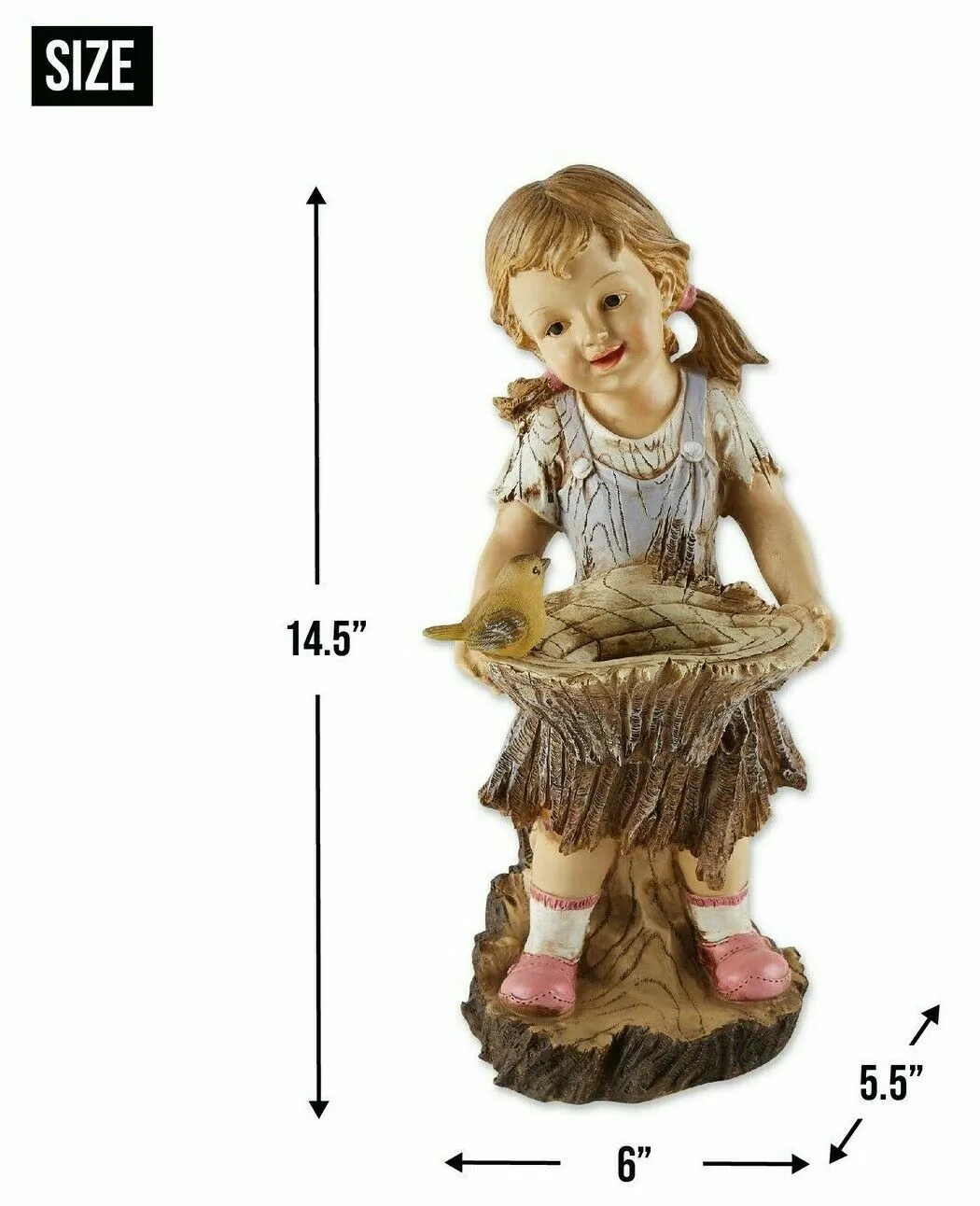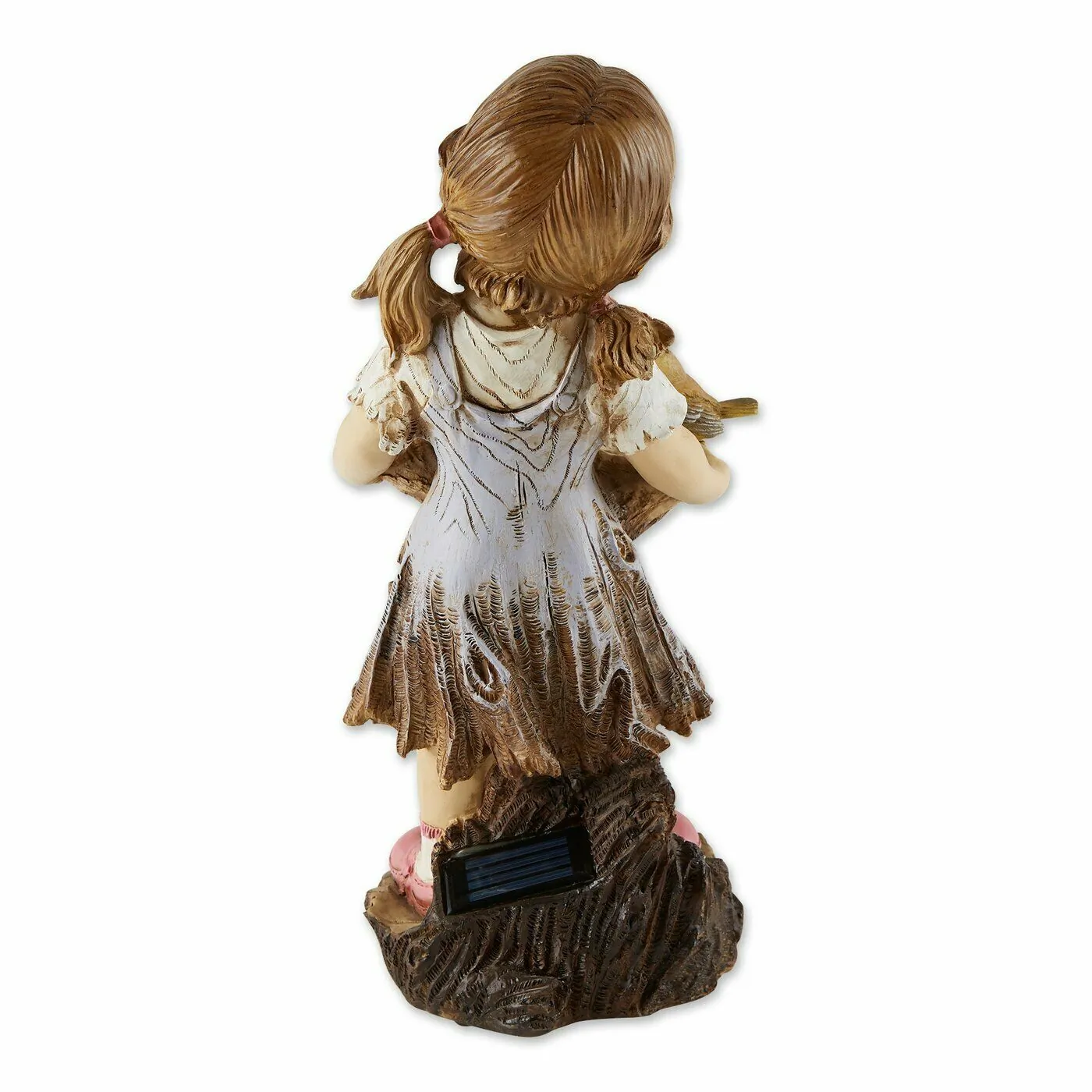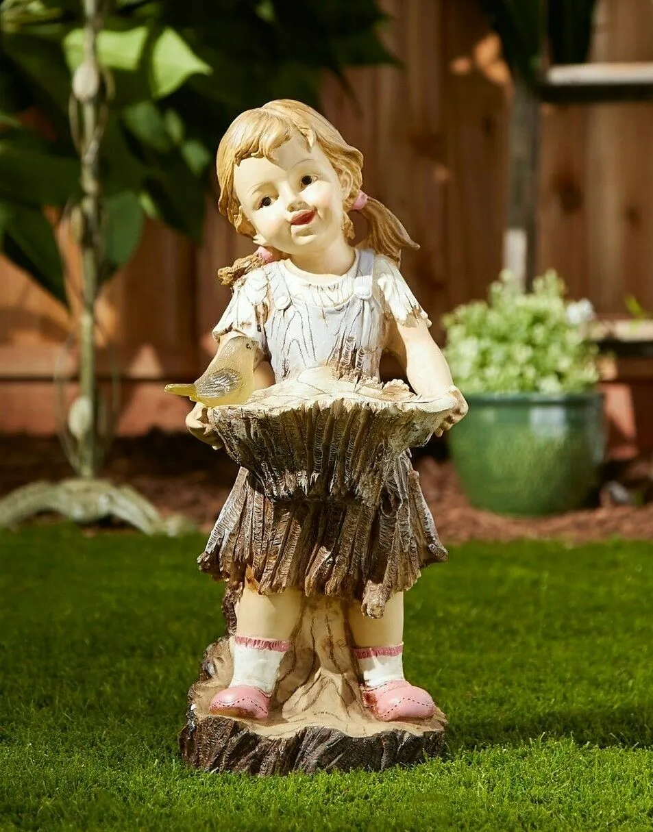 Add a touch of whimsy to your garden with this delightful solar garden light featuring a little girl feeding birds. Perfect for enhancing outdoor spaces, this decorative light automatically illuminates at night, creating a warm and inviting atmosphere.
