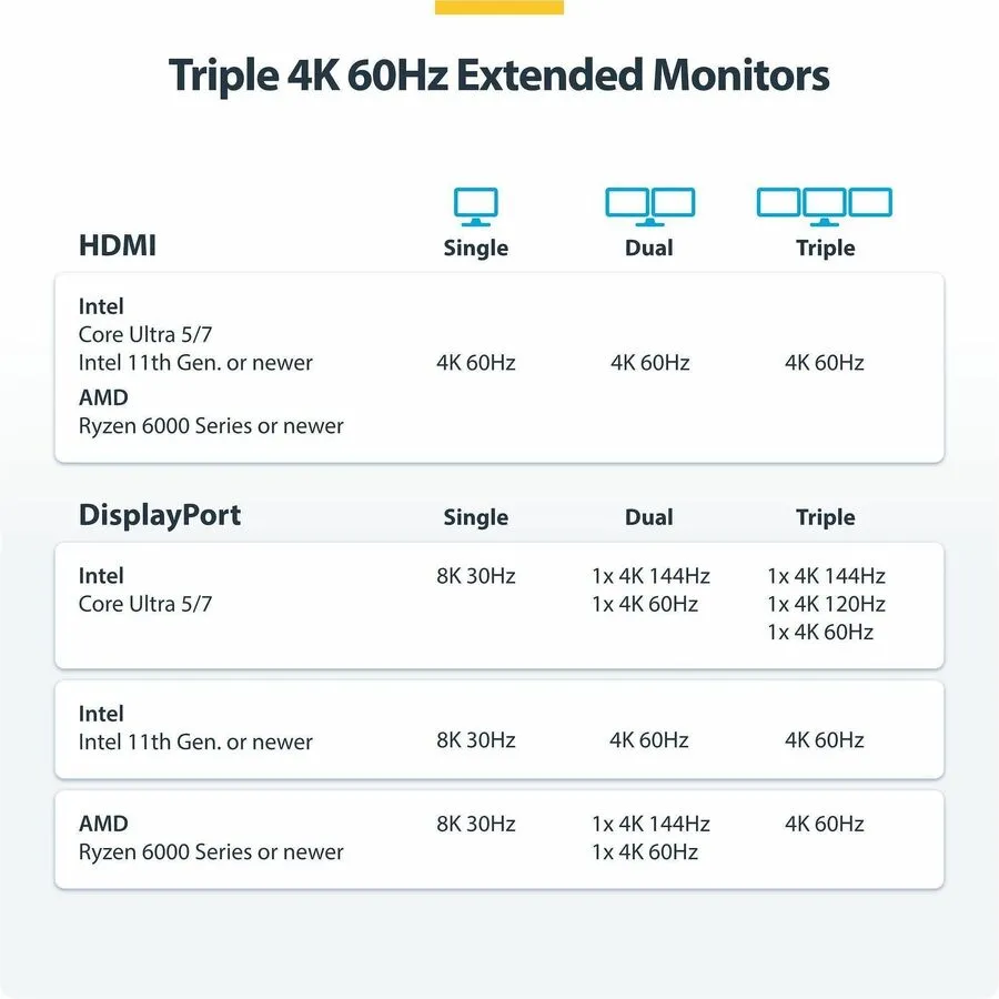 TRIPLE-MONITOR USB4 DOCKING STATION, 4K 60HZ HDMI OR DISPLAYPORT, UP TO 100W LAP