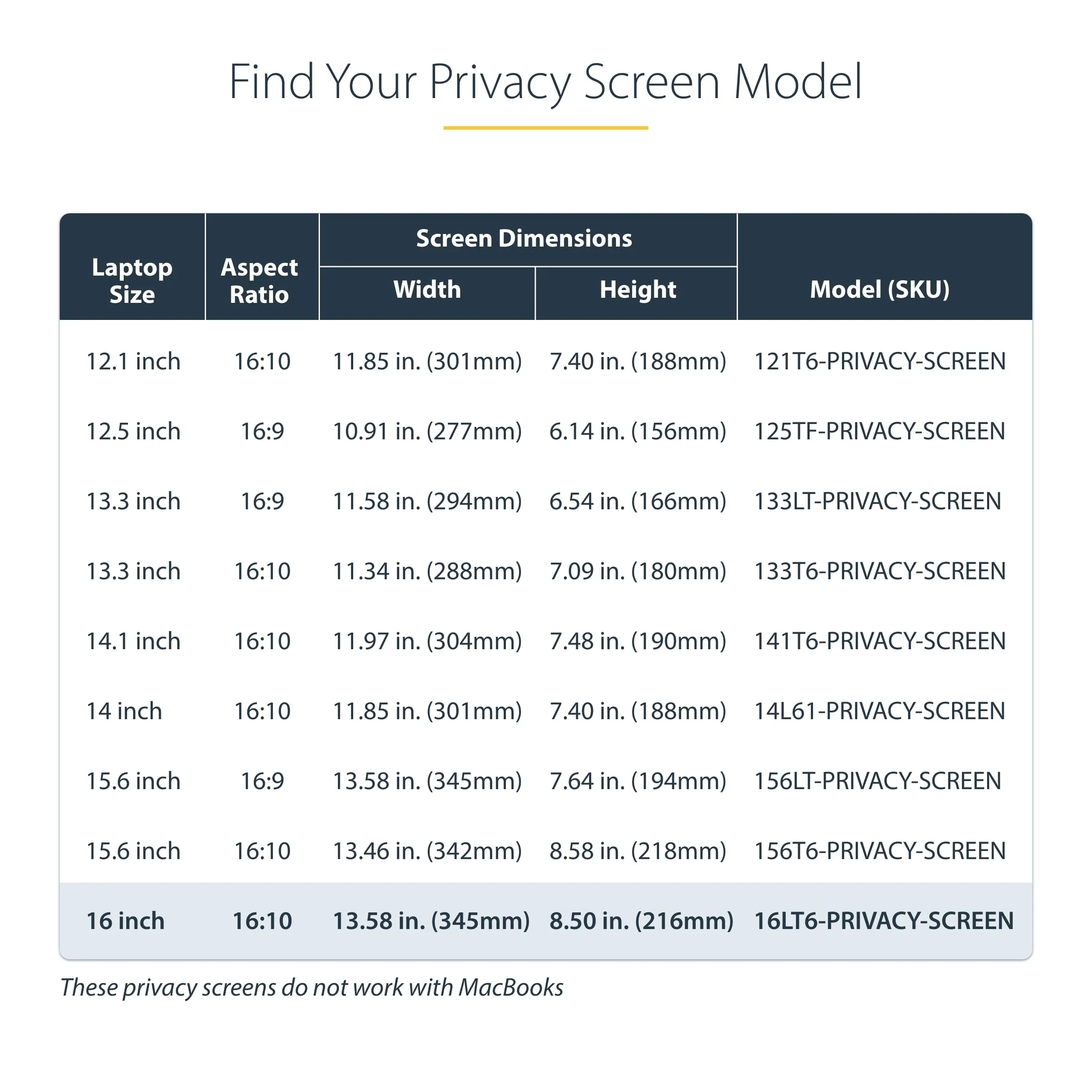 16IN LAPTOP PRIVACY SCREEN