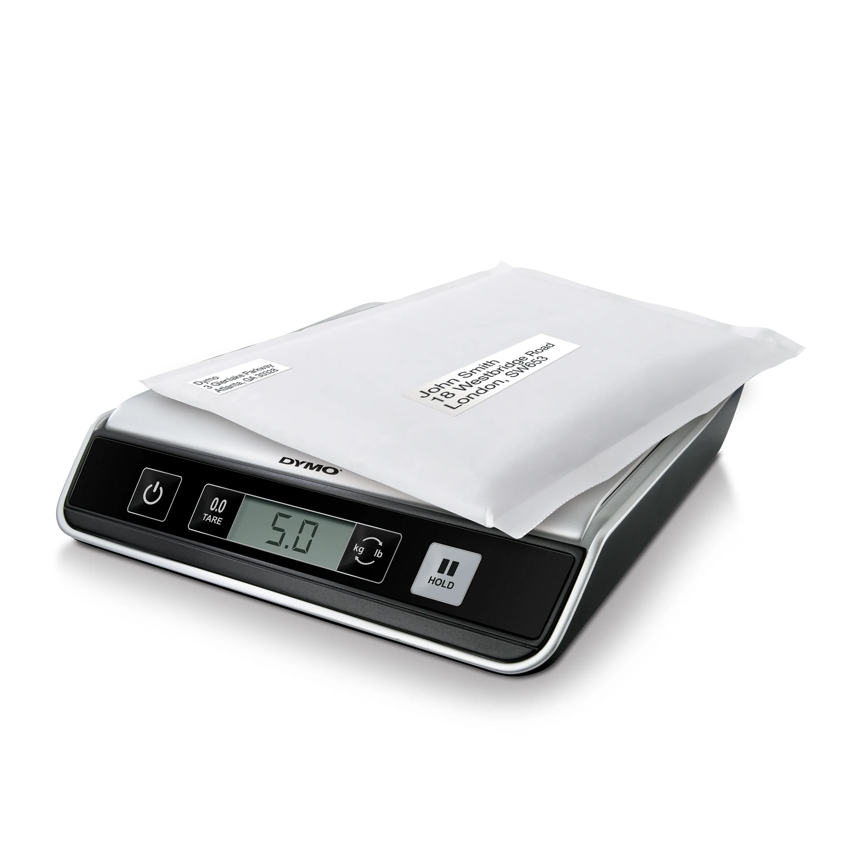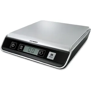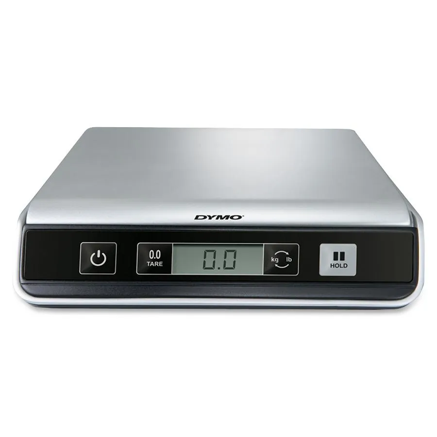 Compact, accurate, digital USB postal scale lets weigh envelopes and packages without a trip to the Post Office or even leaving your desk. Connect the scale via USB to your PC or Mac to use it with popular online mailing and shipping services. Weight capacity is 25 lb. The LCD screen displays weight in easy-to-read digital format in lb./oz. (0 lb. 00.0 oz.) or kg/g (0 kg 000g). The LED illuminated "hold" feature continues to display the weight for 10 seconds after you remove your envelope or package. Ideal for weighing larger items that block your view of the display. The tare function lets you weigh items in a container without including the container weight. The automatic shutoff feature conserves batteries when the scale is not in use. Compact design fits in the busiest work space and stores neatly in most desk drawers. Digital postal scale is powered by USB cable (included) or three AAA batteries (sold separately).Dymo Digital USB Postal Scale, Black