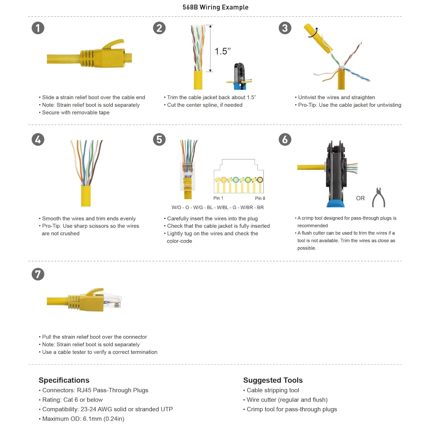 Enhance your networking experience with our 100-Pack Cat 6 RJ45 Pass-Through Connectors. Designed for easy termination and reliable connections, these connectors are perfect for both professional installations and DIY projects.