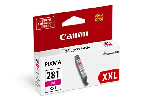 This XXL dye-based, magenta ink tank delivers outstanding quality for all your images and photos in your Canon Pixma TR7520, TR8520, TS6120, TS8120 and TS9120. Combined with Canon photo paper, it protects your photos with the ChromaLife100 system for beautiful, long-lasting photos. Extra, extra-large ink tank can help you save money, prints more when you needed and extends time between replacing ink tanks. Genuine Canon ink provides peak performance and offers exclusive content from Creative Park Premium. This XXL ink tank provides 3.2 times more prints compared to its standard equivalent.