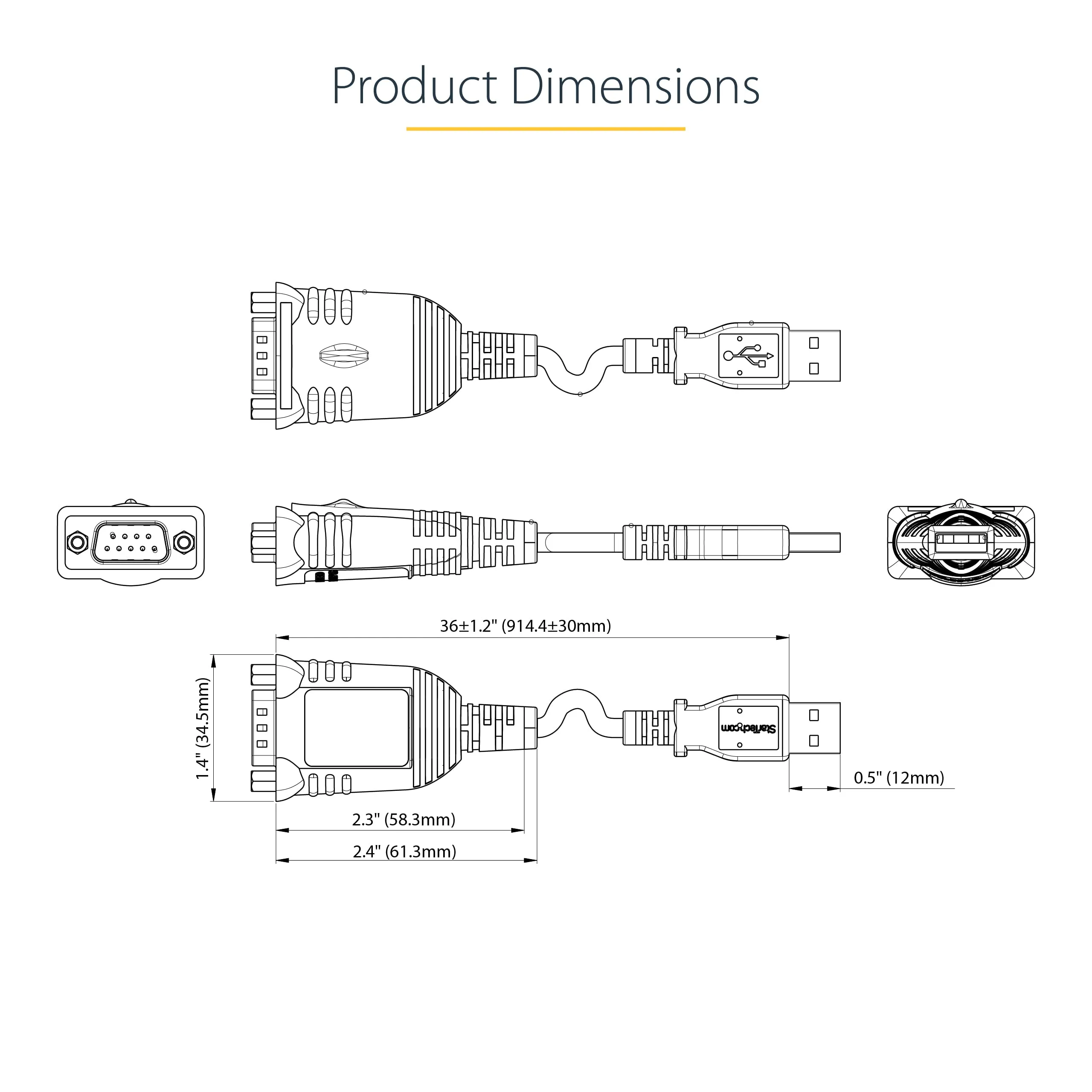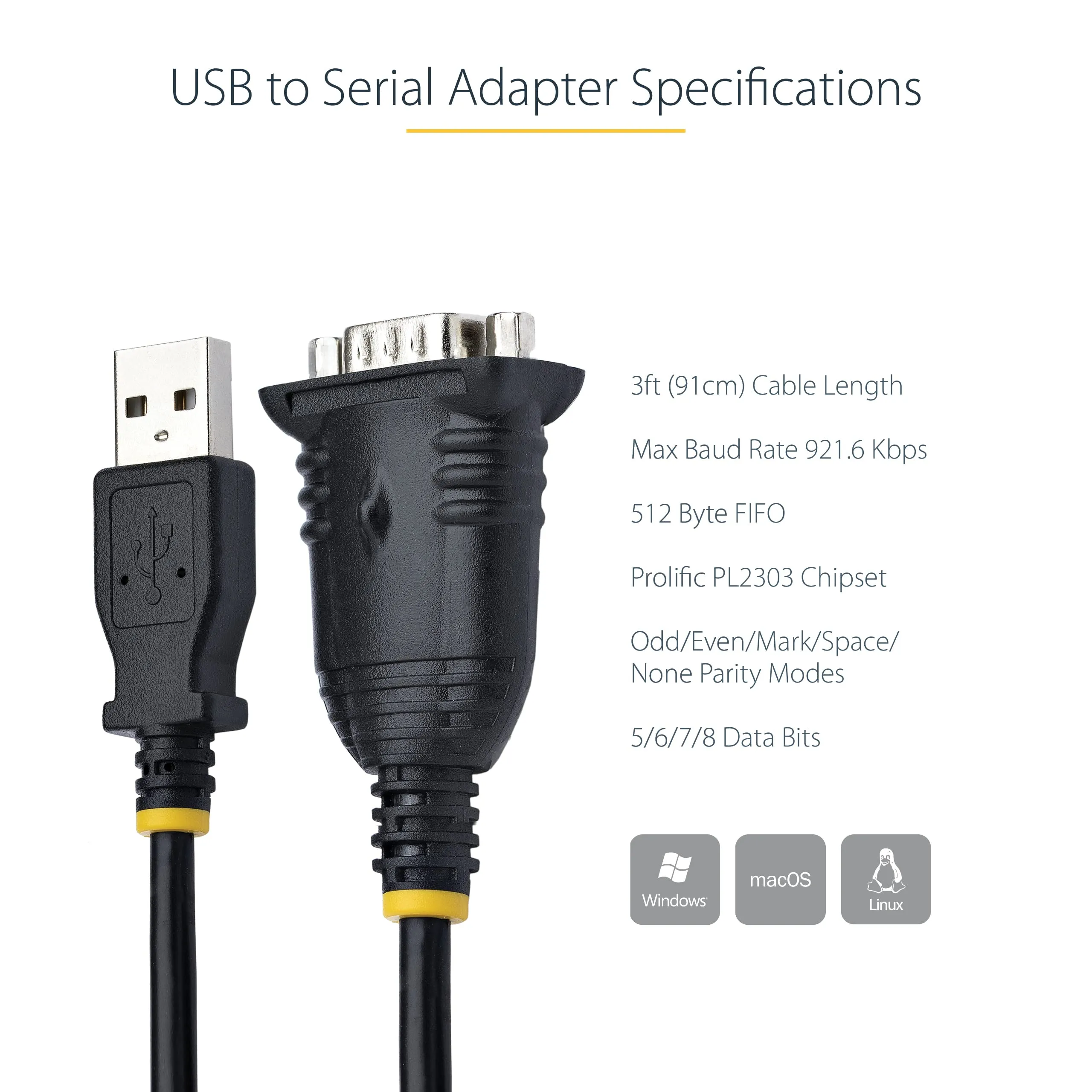 Startech Cable 1P3FP-USB-SERIAL 3ft USB to Serial Cable USB t COM Port Adapter