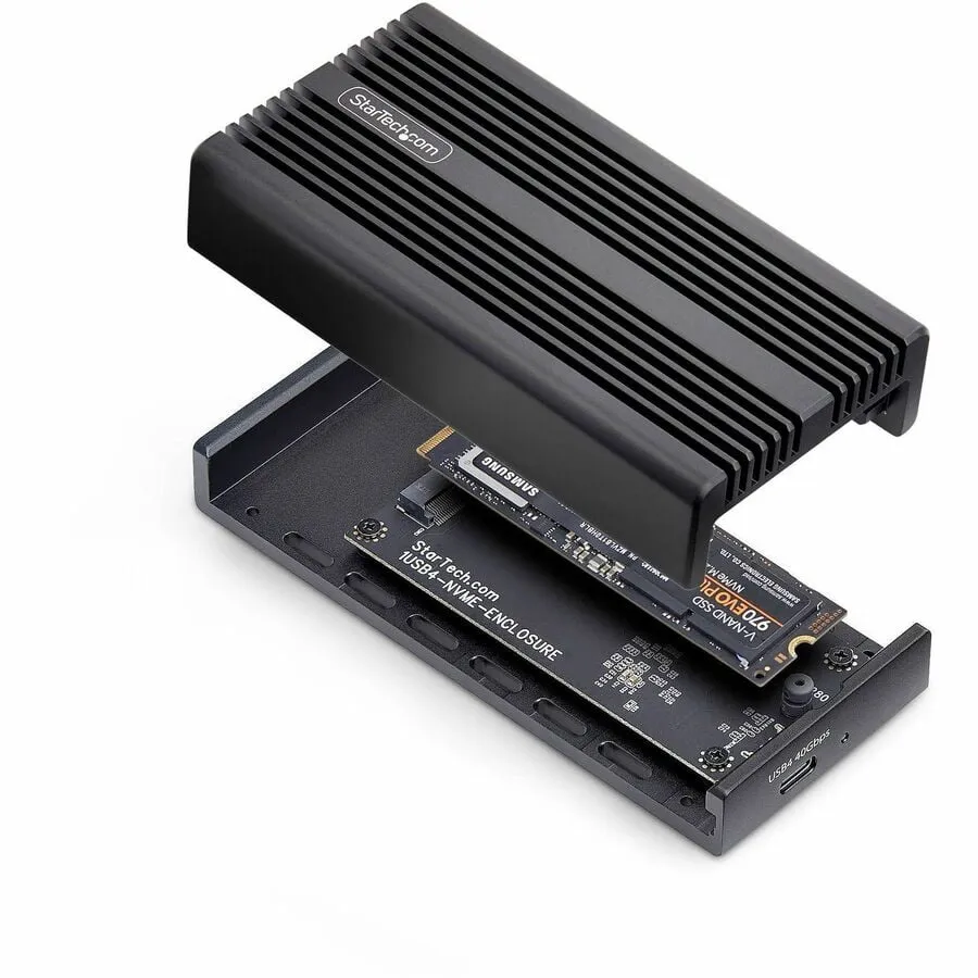 Ultra-fast USB-C enclosure for PCIe M.2 NVMe SSDs; Up to 40Gbps via a USB4 host - Thunderbolt 5/4/3/USB 3.2 compatible for seamless USB-C compatibility between enterprise laptops/workstations - Supports B+M/M-Key 2230/2242/2260/2280 M.2 NVMe including Samsung EVO 950/960/970 Kingston/Seagate/Western Digital/HP/Intel - Heatsink cover w/thermal pad for optimal heat dissipation - Perform instant backup/disk imaging; Ideal for professional applications where fast and portable NVMe access is required