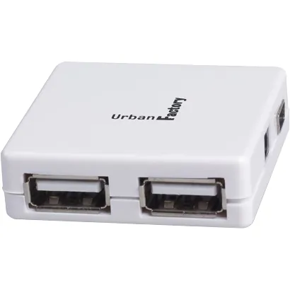 The Urban Factory 4-Port USB Hub is designed to expand your connectivity options, allowing you to connect multiple devices simultaneously. Its sleek white design adds a modern touch to any workspace.
