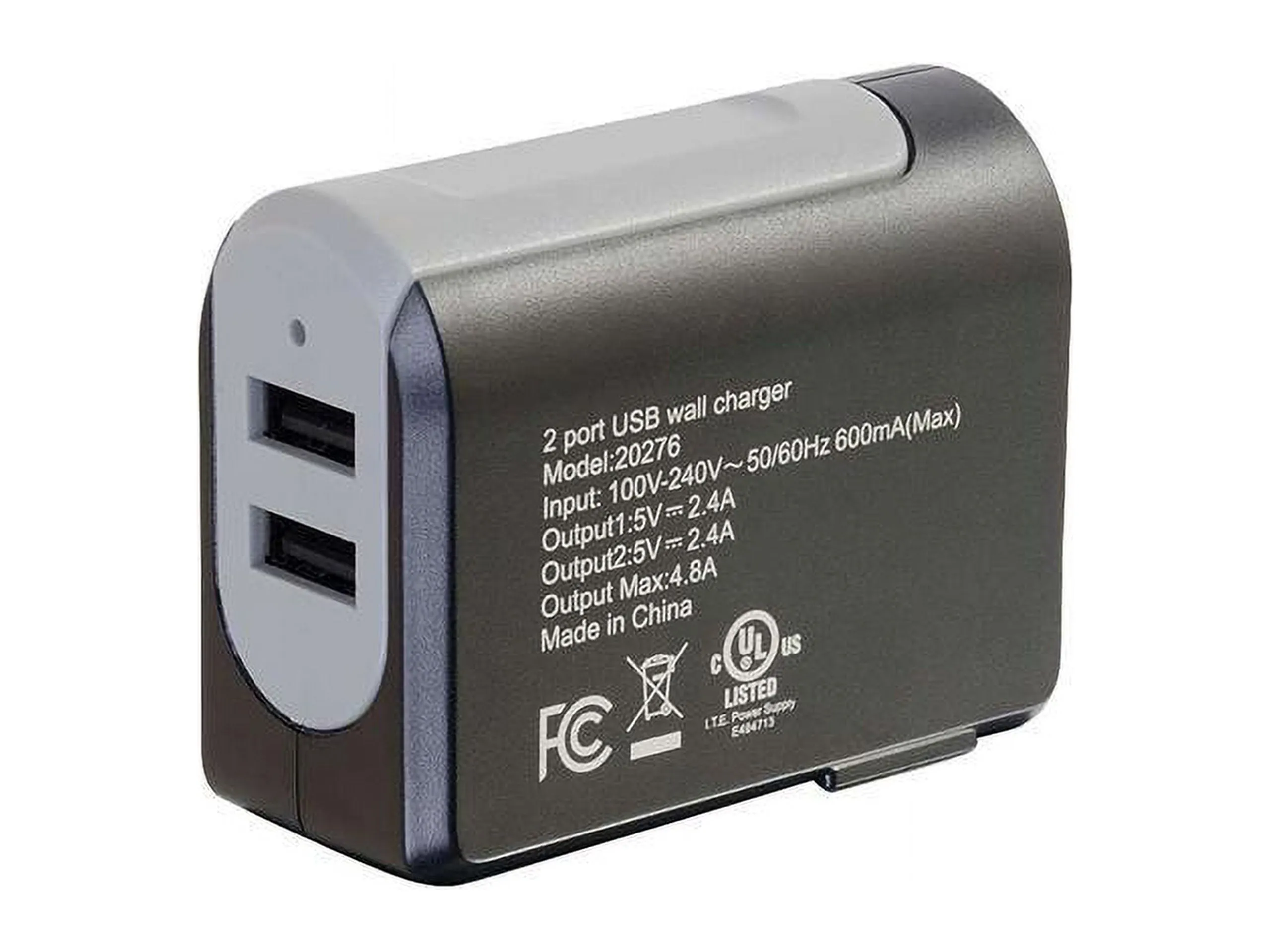 2-PORT USB WALL CHARGER - AC TO USB ADAPTER, 5V 4.8A OUTPUT
