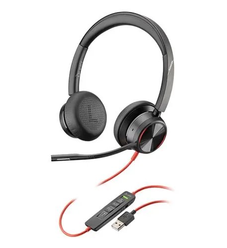 The BLACKWIRE 8225 is a high-performance USB-A headset designed for both Windows and Apple Mac OS users. Featuring a flexible, noise-canceling microphone equipped with Acoustic Fence technology, this headset ensures clear audio during calls.