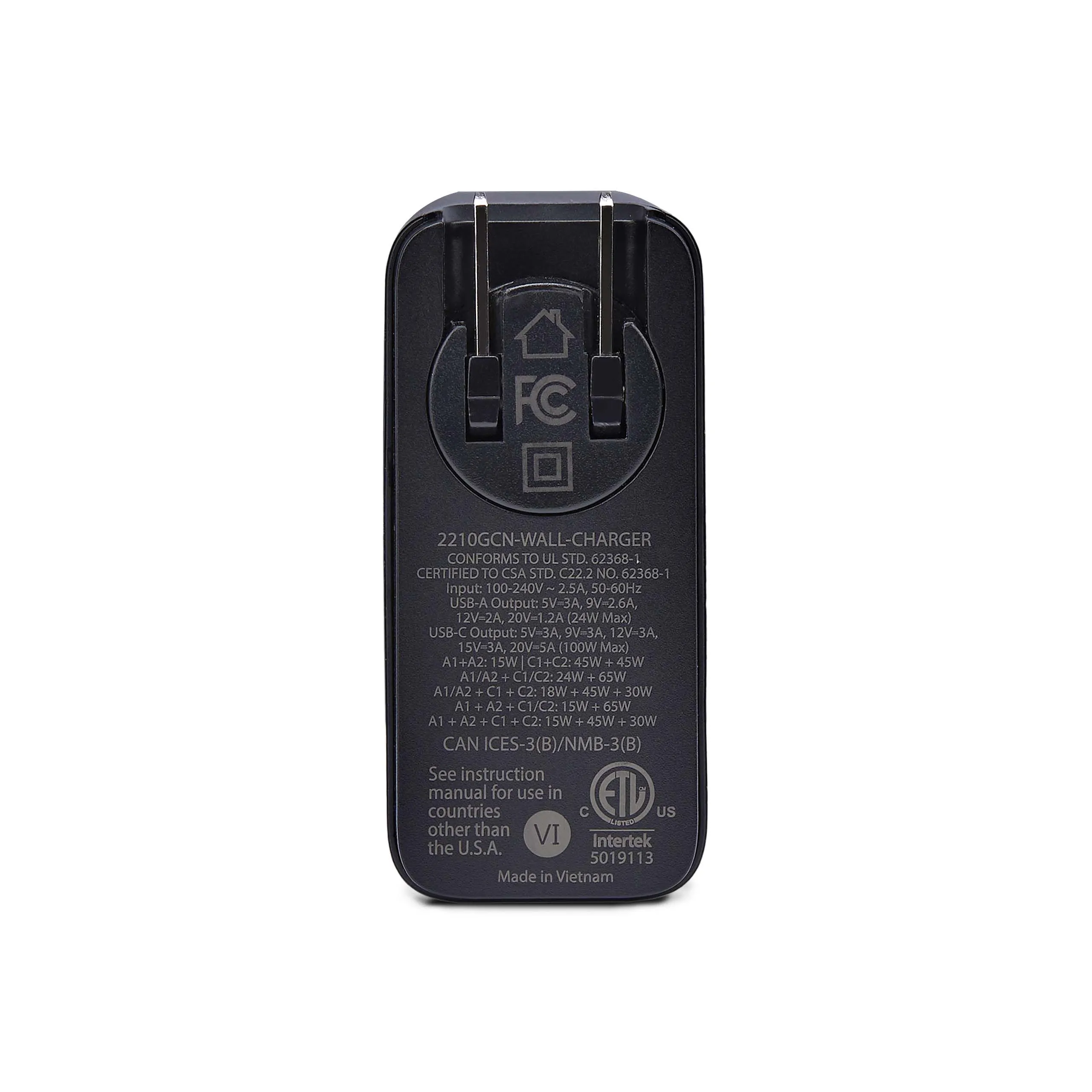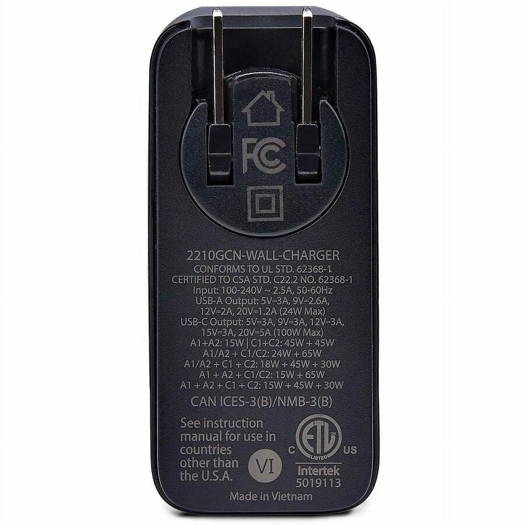 100W USB-C WALL CHARGER, 2X USB-C, 2X USB-A, PORTABLE GAN CHARGER WITH USB POWER