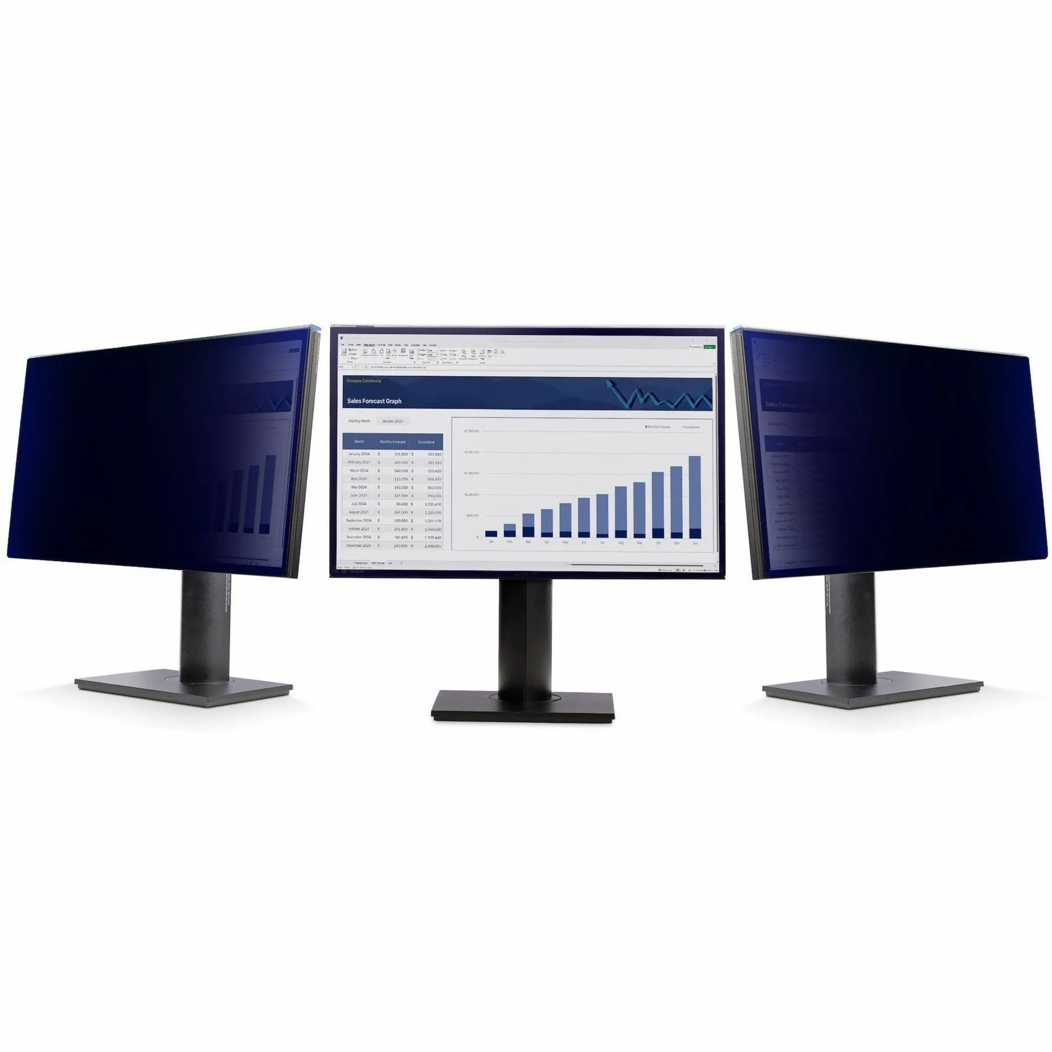 Hanging acrylic privacy filter w/ Microlouver technology; Effortless to hang/remove - Privacy screen protector obscures the display of a 24-inch 16:9 desktop monitor to protect sensitive data - Provides clear viewing angle of 60 (+/-30 from center); Computer security shield with high-gloss finish/scratch protection coating - Dimensions 21.5x12.6in - Monitor screen protector blocks blue light/65% light transmittance - Security screen includes adhesive bumpers for secure hanging.