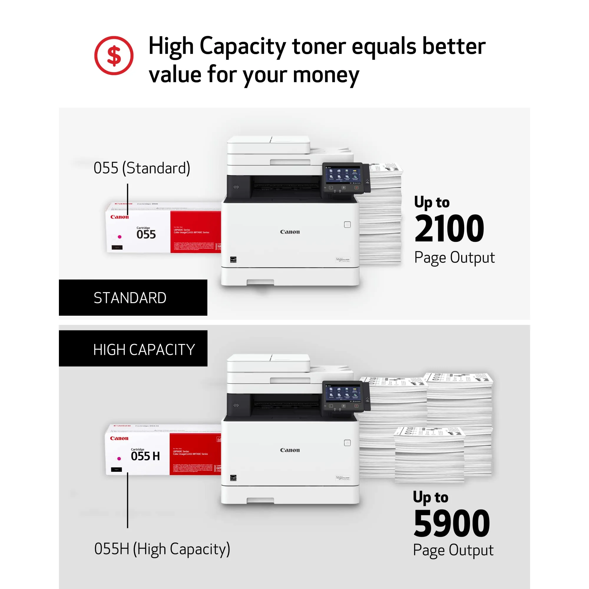 Canon (CRG-055 M L) Color imageCLASS MF741cdw LBP664cdw MF743cdw MF745cdw Magenta Toner Cartridge (2100 Yield)