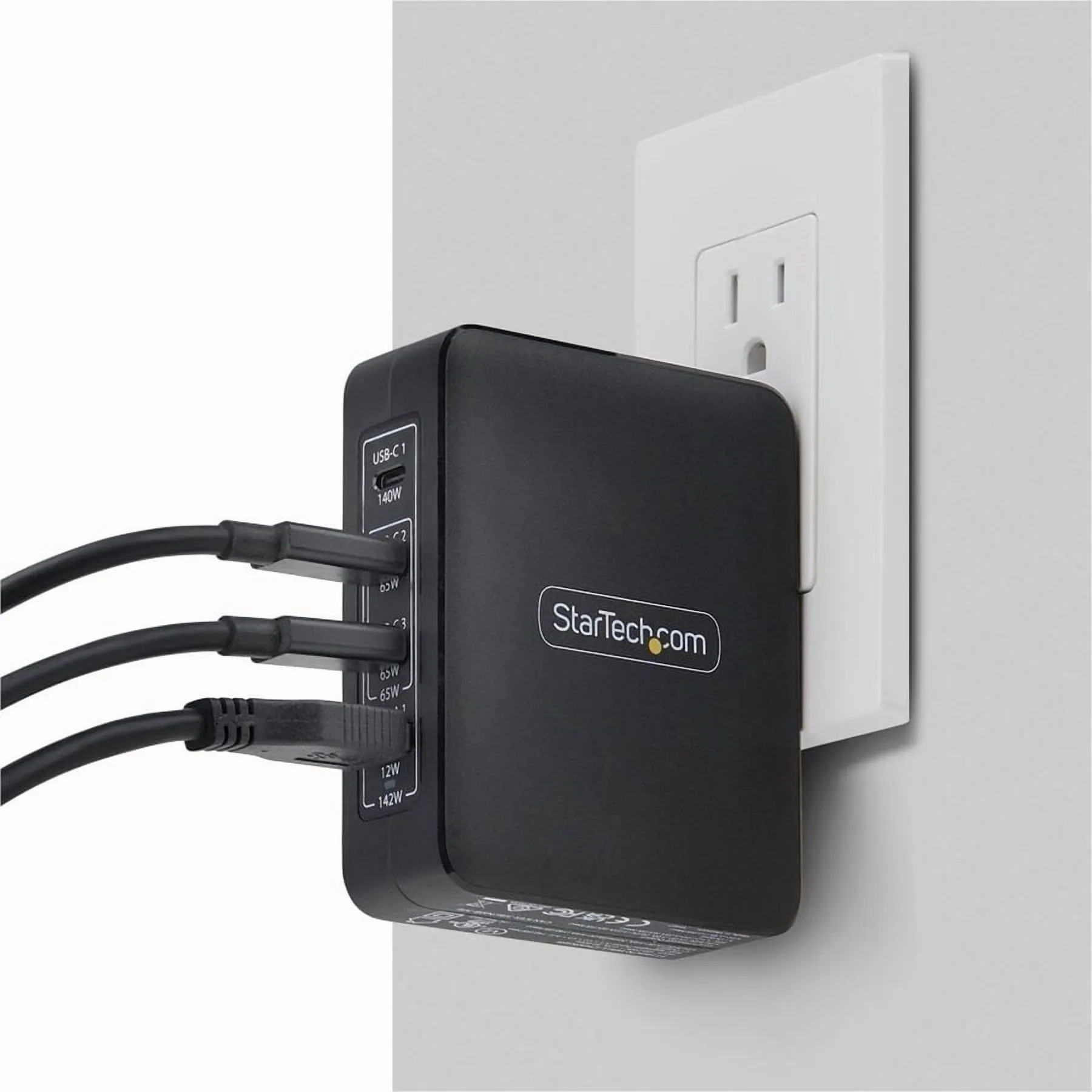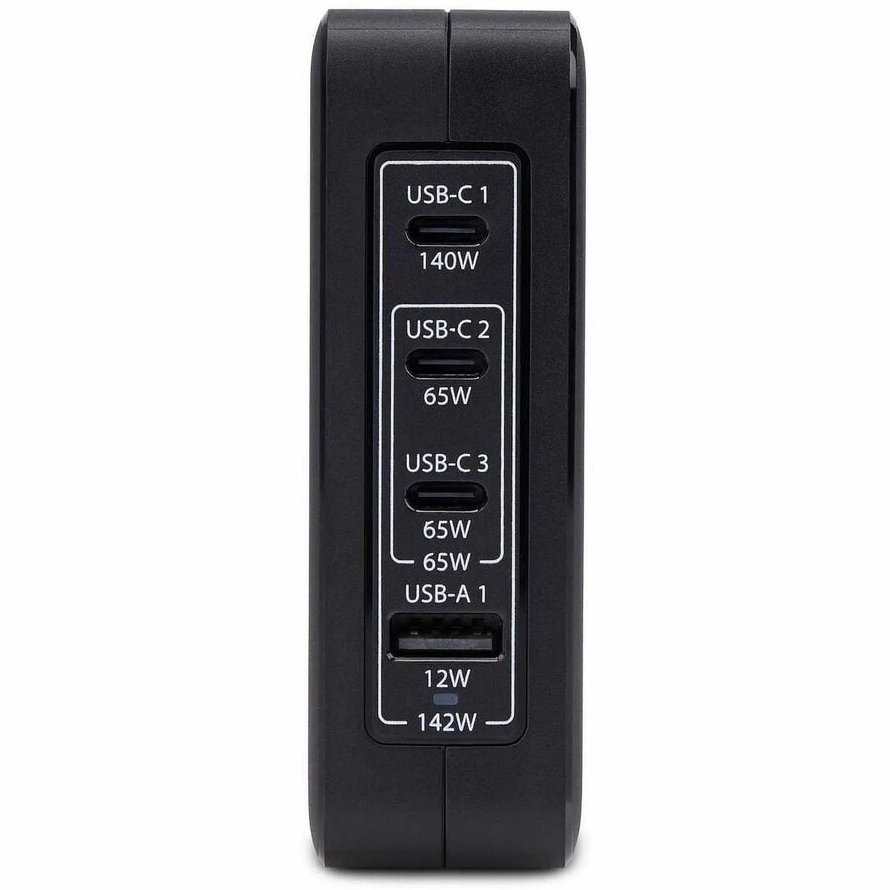 140W GaN USB-C wall charger with PD 3.1 for charging multiple PD voltage profiles (5V/9V/15V/20V at up to 5A) - 3x USB Type-C ports (140W max/PD 3.1 support) 1x-USB-A - Runs cool at full-load use - Portable travel charger fully supports MacBook M series Pro/Max ensuring high-speed 140W charging - Charges devices with earlier PD revisions like MacBook/Dell XPS/Precision/Inspiron/iPad Pro - TUV Safety Listed (IEC 62368-1) and FCC/ICES EMC certified