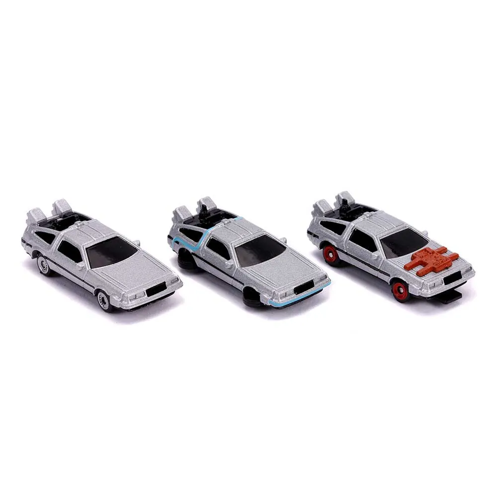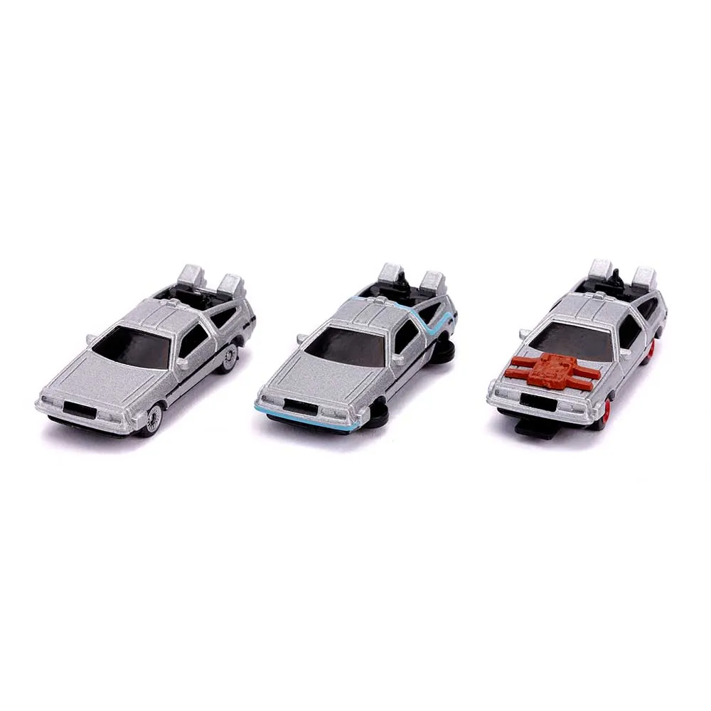 • Brand new diecast car models of "Back to the Future" Time Machine 3 piece Set "Nano Hollywood Rides" die cast model cars by Jada.