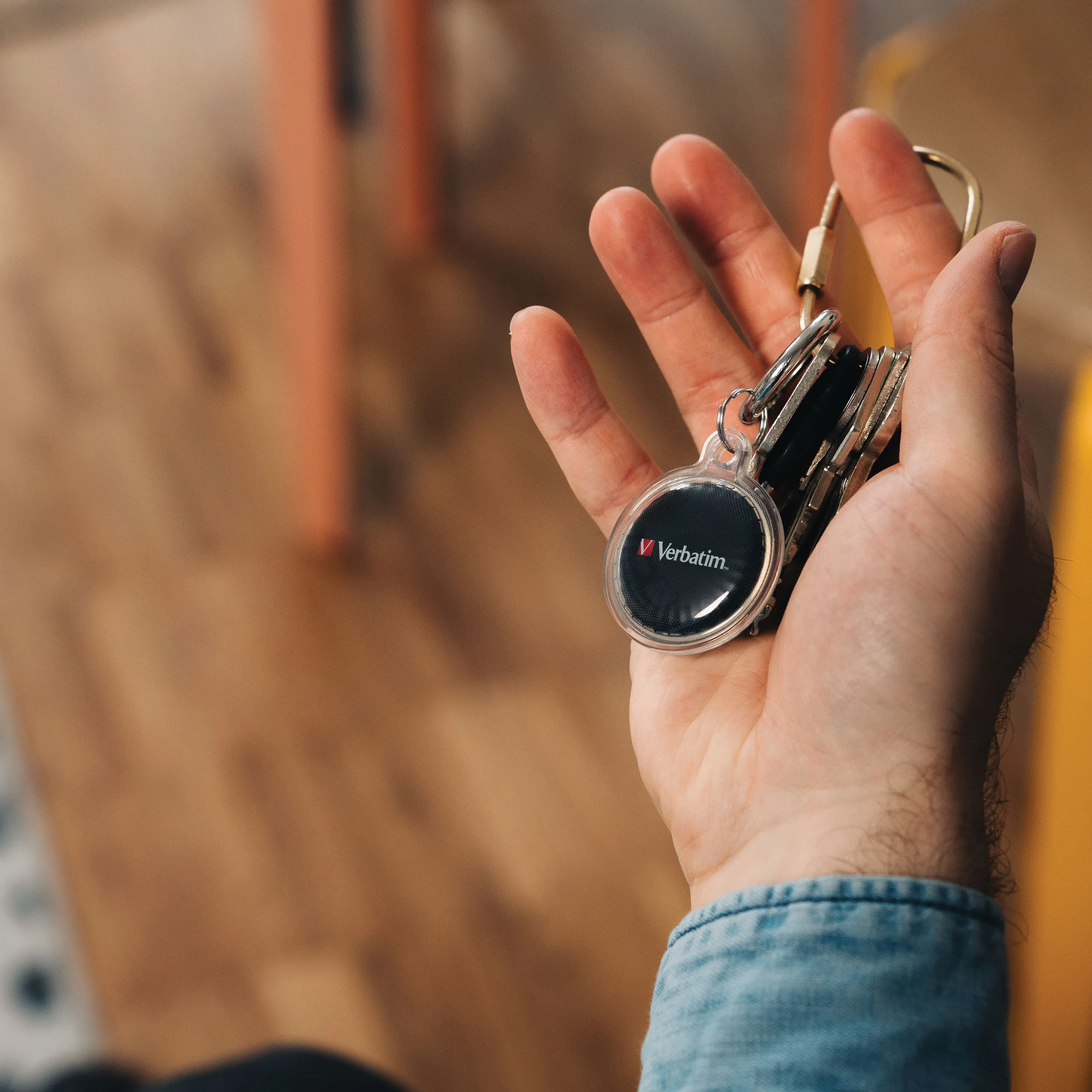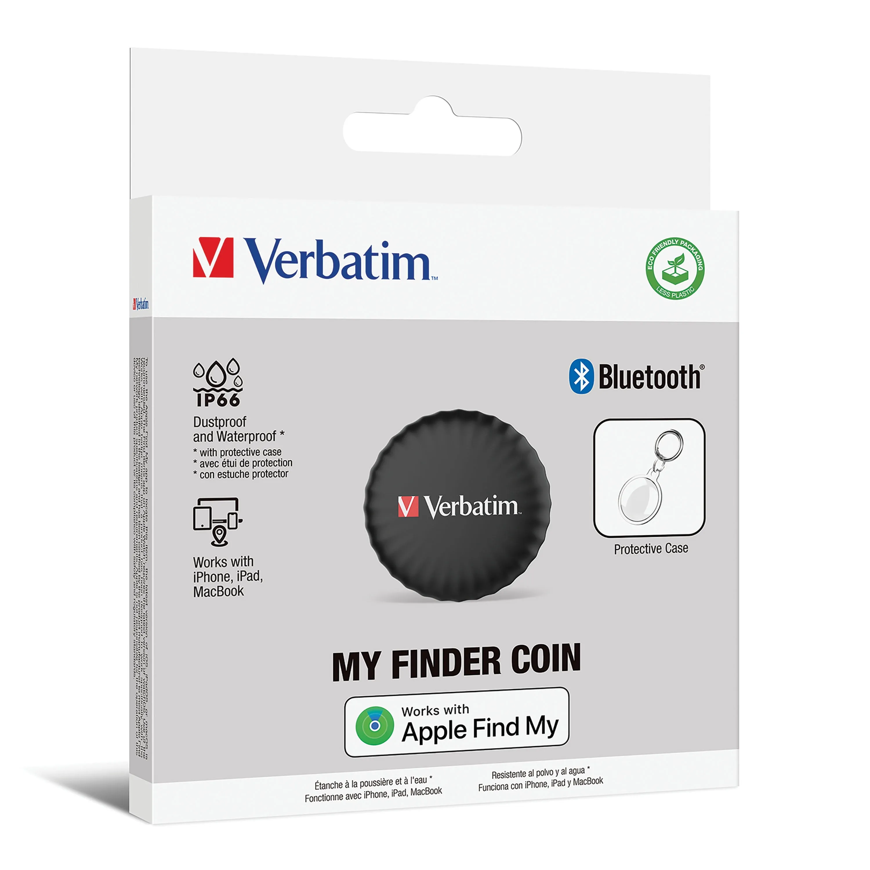Introducing the Verbatim My Finder Bluetooth Coin tracker, designed to help you effortlessly locate your keys, bags, or other valuables. This compact tracking device works exclusively with the Apple Find My App. Simply attach the My Finder to the item you want to track and use the app to locate it easily.