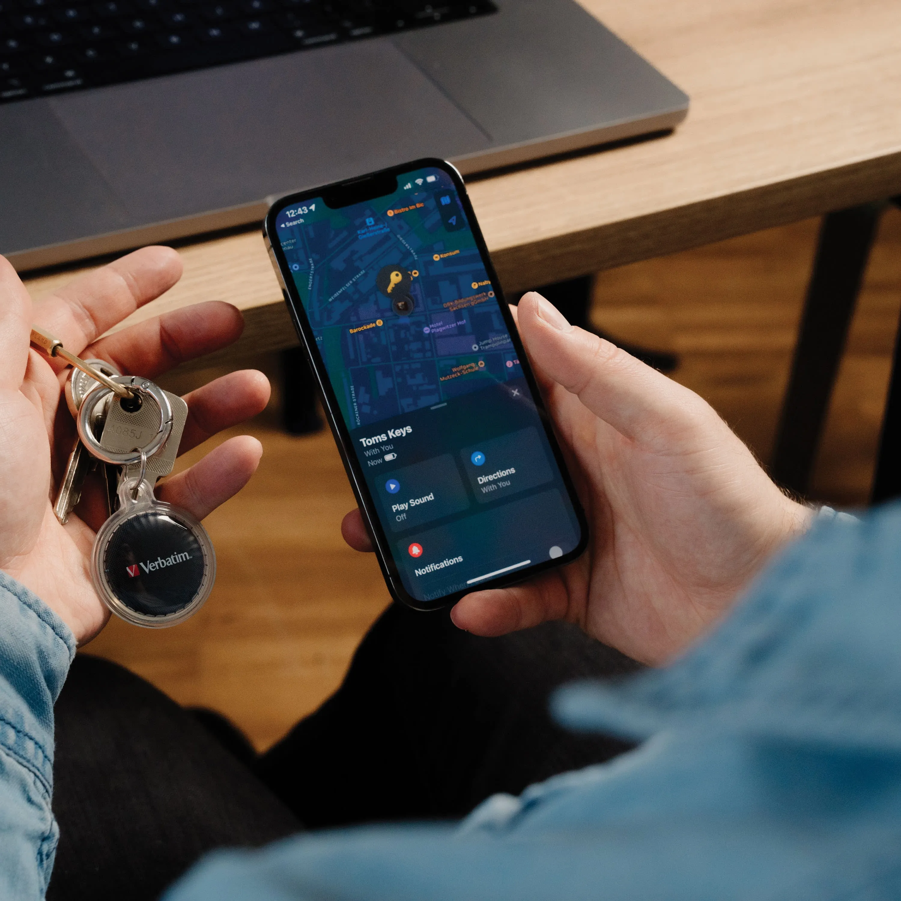 When you're within the Apple Find My ecosystem, you can find your lost item by selecting 'Play Sound' in the app, which helps you follow the beep to your item. You can also view its location on the map through an anonymous, encrypted process that protects your privacy.