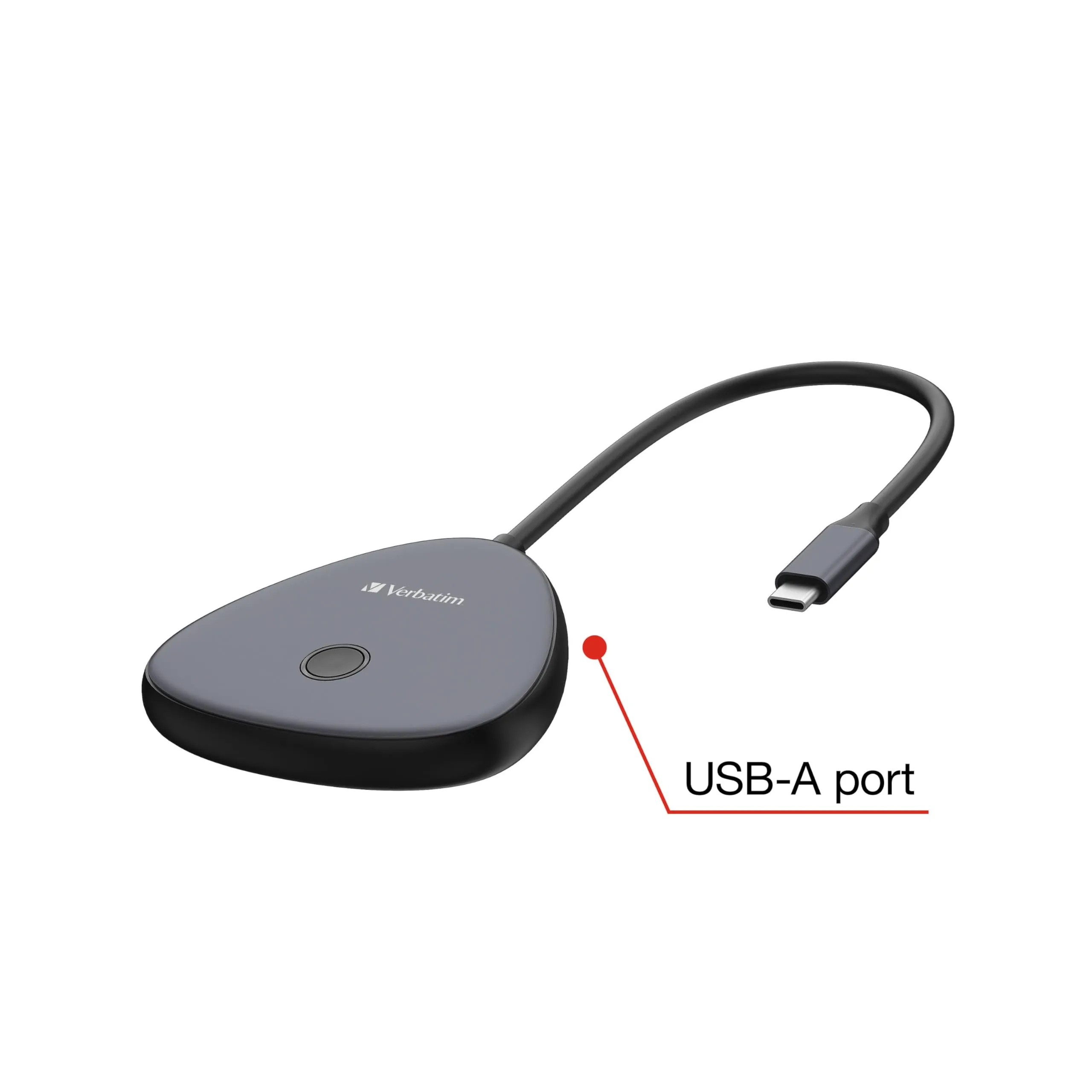 Verbatim, Share My Screen, 4K USB-C, Wireless, Display Adapter, USB Hub, Card Reader, WDA-02