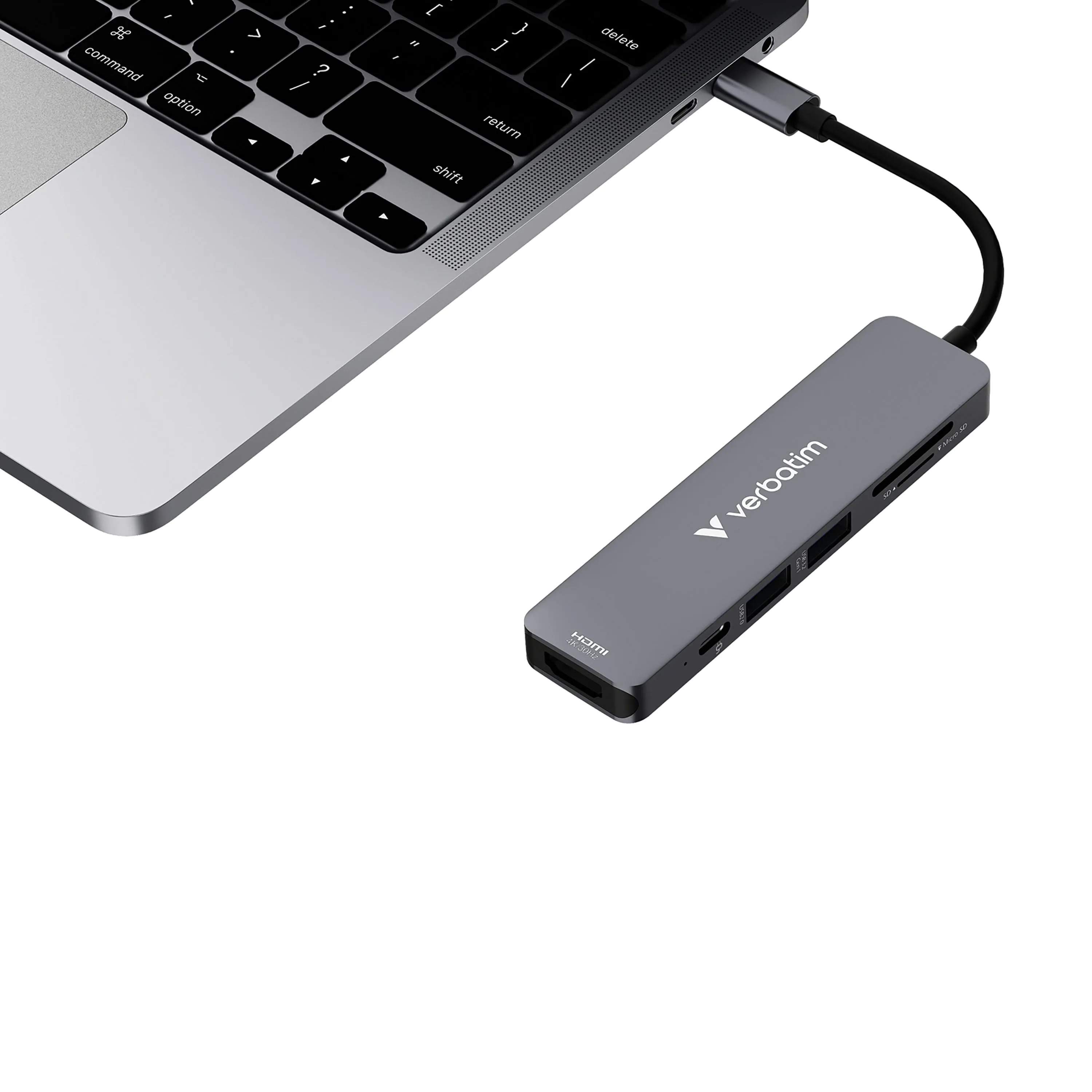 • Transform a single USB-C(R) port into 6 versatile ports, including USB 3.2 and HDMI(R), to connect a wide range of devices;• Experience swift data transfer with USB 3.2 Gen 1 technology up to 5 Gb/s, ensuring efficient workflows and minimal wait times; supports max power 5 volts/0.9 amps for connection device;• General USB-A 2.0 supports data transfer up to 480 Mbps;• Easy data transfer from cameras and other devices with SD(TM) Card and microSD(TM) Card slots with write speed up to 40 Mb/s and read speed up to 30 Mb/s;• HDMI(R) port supports high-resolution displays up to 4K 30-Hz resolution, making it ideal for presentations, watching movies, or expanding your workspace with crystal clear visuals;• Keep your devices charged while using the hub with pass-through charging capabilities (where supported) up to 100 watts, ensuring you never run out of battery during critical tasks;• Plastic-free packaging ;• Includes quick-start guide;