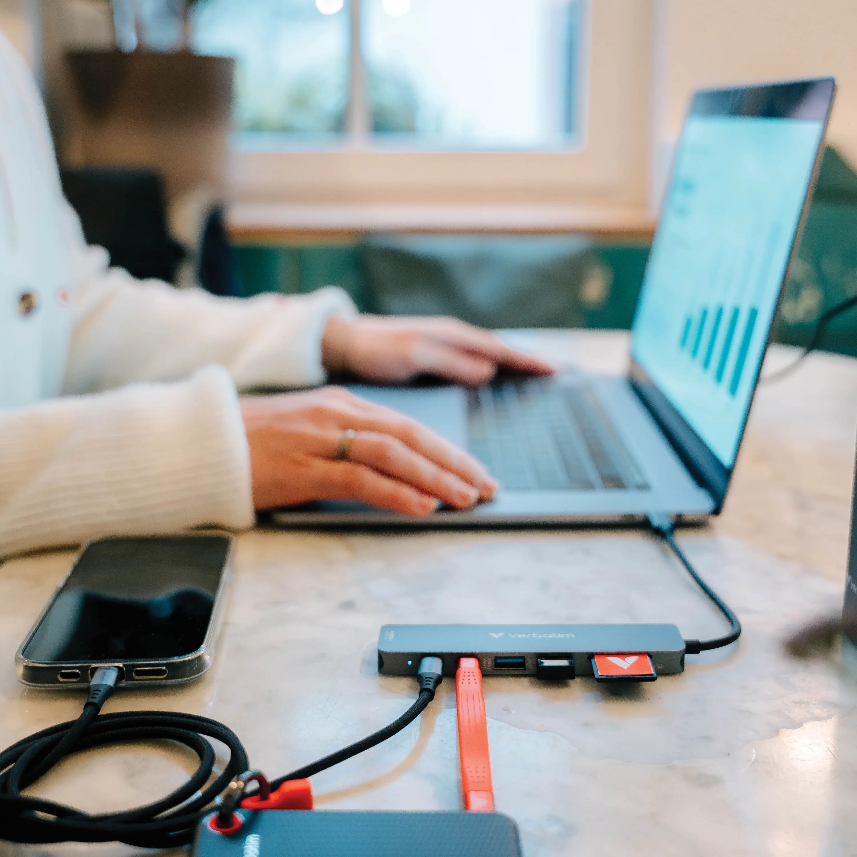 Featuring a sleek and compact design, this hub fits seamlessly into your workspace while providing essential ports for all your devices.