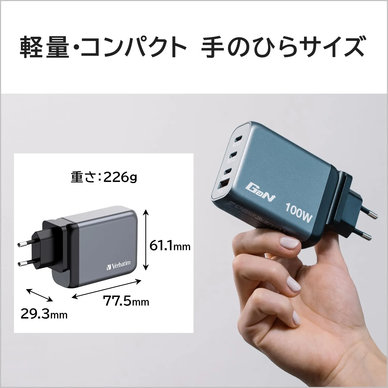 Verbatim 100W 4-Port GaN Wall Charger with USB-C and USB-A