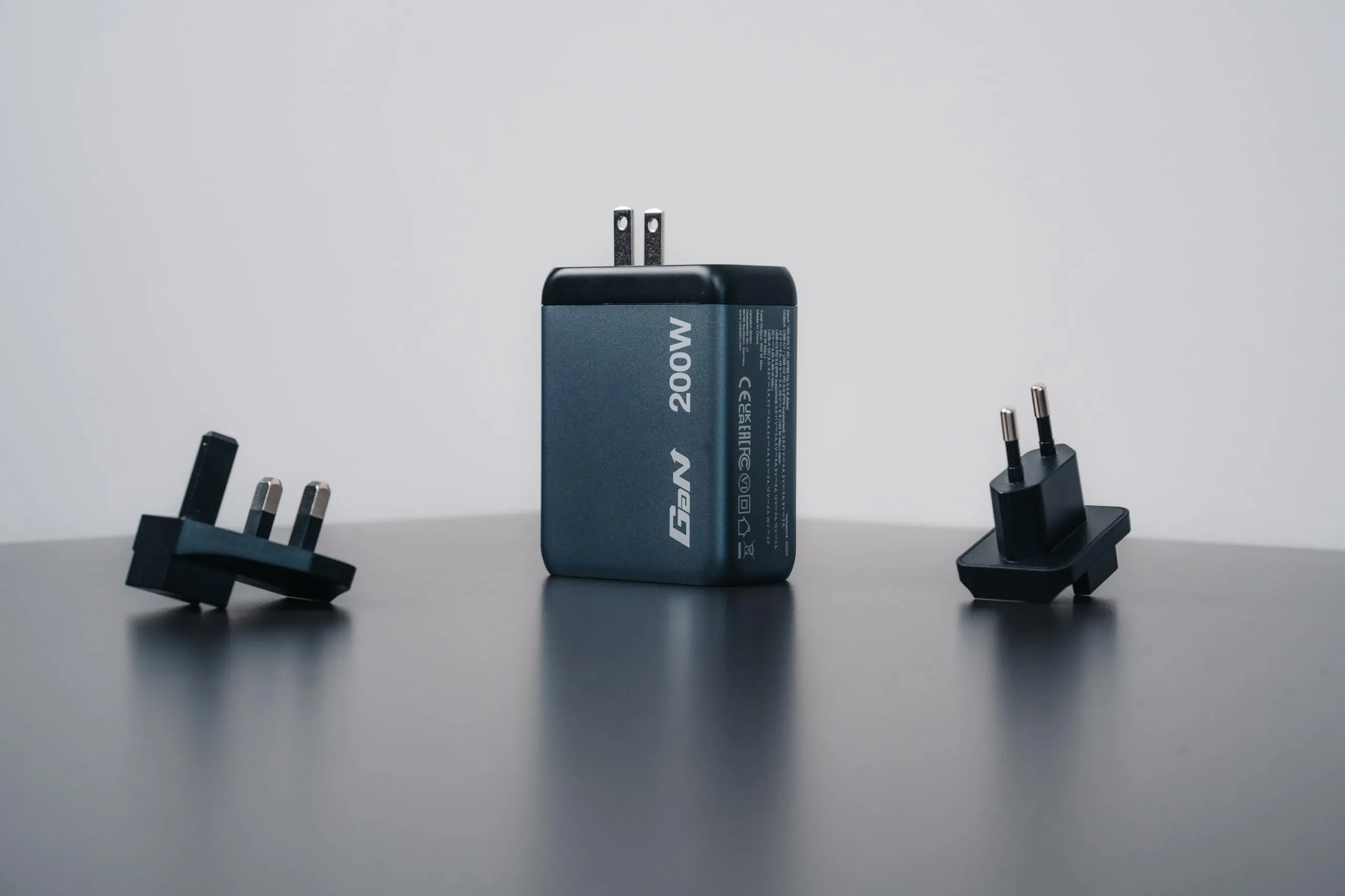 The Verbatim 200W GaN Wall Charger features three USB-C PD ports and one USB-A QC 3.0 port in a compact, sleek design. Perfect for home, office, or travel, this charger can power tablets, smartphones, and gaming devices with ease. It comes with foldable US prongs and includes replaceable EU and UK plugs, making it an ideal travel companion. Utilizing Gallium Nitride (GaN) technology, this charger provides fast and efficient charging, producing less heat for enhanced safety and portability. The GNC-200 charger is crafted with high-quality, flame-resistant materials and incorporates four safety protection systems to ensure safe charging at all times.
