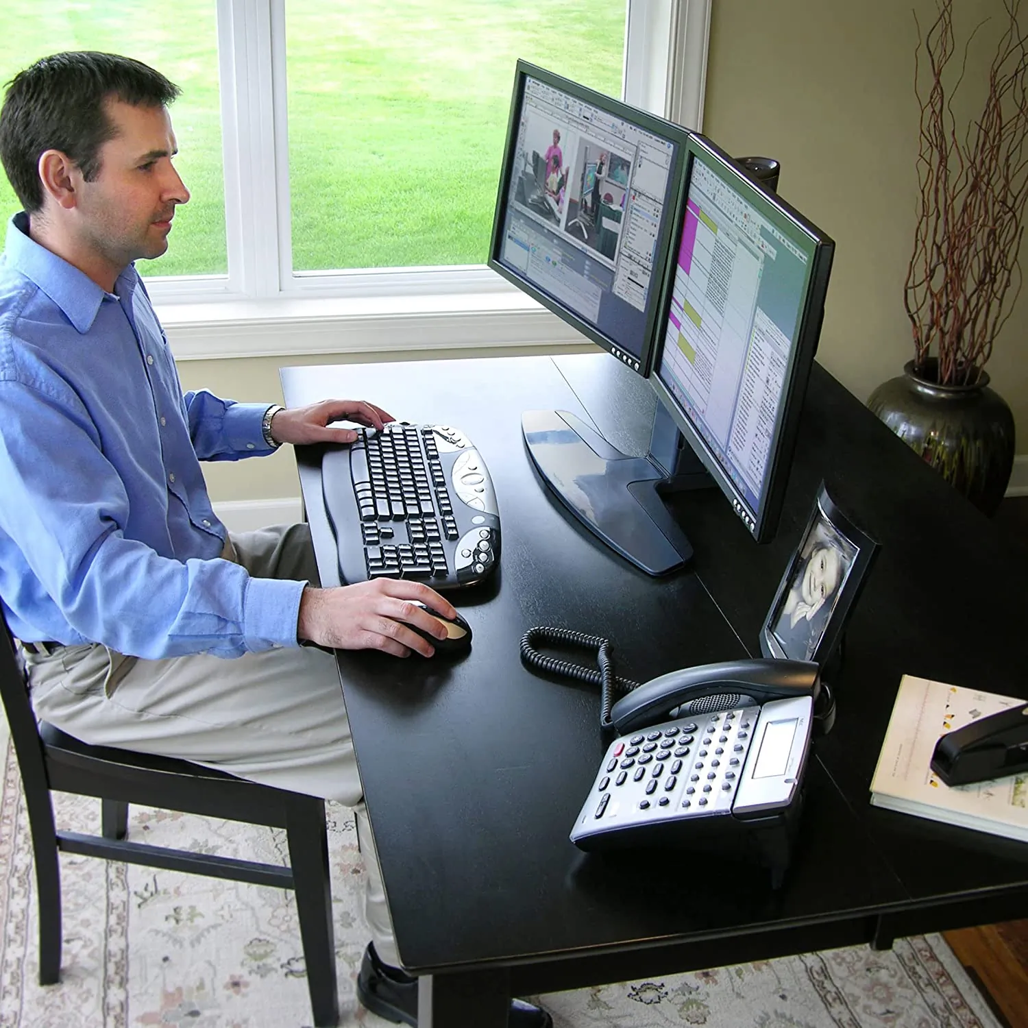 ND.SIMULTANEOUSLY LIFT LCD SCREENS TO PROPER HEIGHT FOR UNSURPASSED ERGONOMIC CO