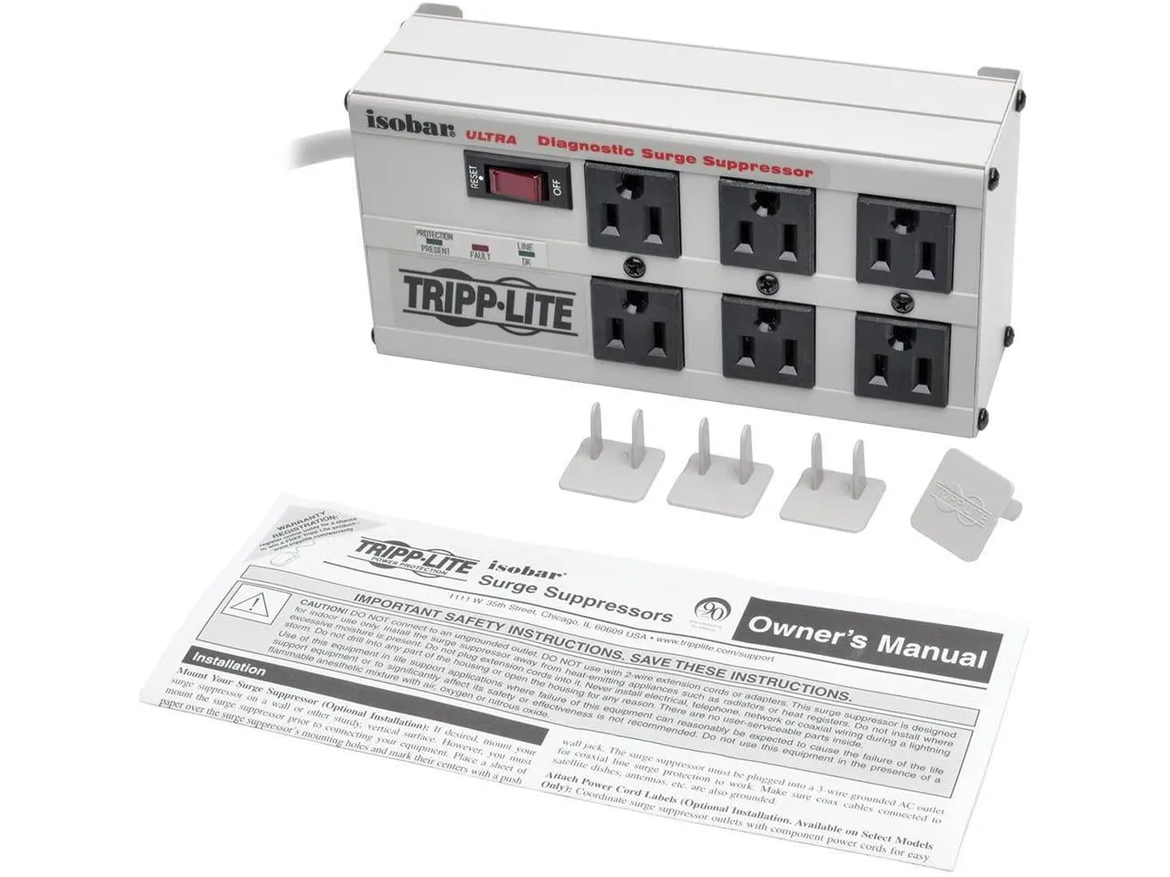 • 6 outlets in 3 isolated filter banks;• 3,330 Joules;• 6ft power cord;• Protects personal computers & peripherals;• Multicomponent suppression circuits;• Exclusive isolated filter banks eliminate interference between components;• All-metal housing;• Widely spaced outlets for transformer plugs;• Protection, wiring status & fault warning LED indicators;• Lighted power switch confirms power on/off status;• UL listed;• RoHS compliant;• Dim: 2.5"H x 3.5"W x 9"D;• Lifetime product warranty;• $50,000 Ultimate Lifetime Insurance;