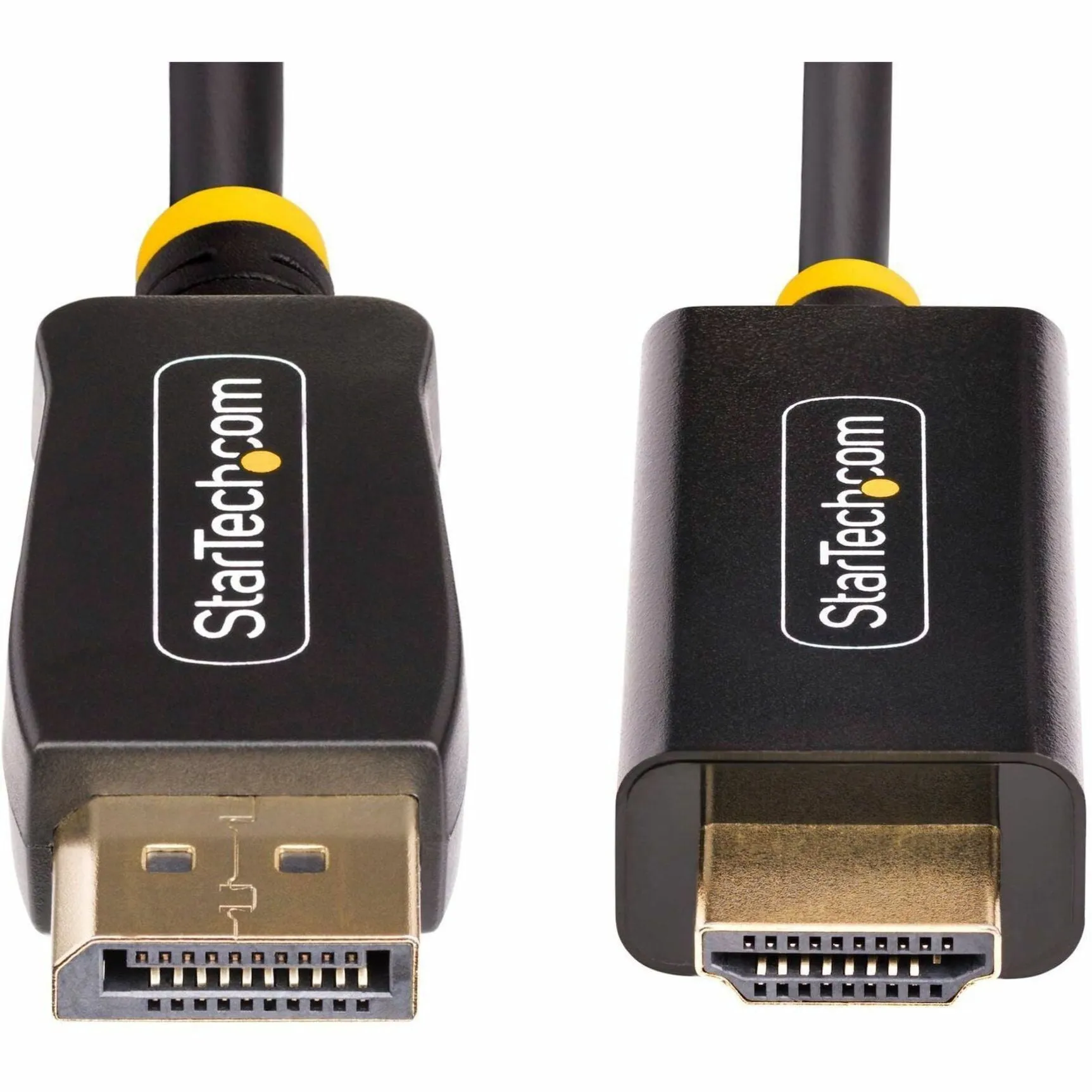 3.3ft (1m) DisplayPort to HDMI Adapter Cable connects a DisplayPort-enabled desktop to an HDR-capable 4K 60Hz HDMI display - 18Gbps bandwidth; 4:4:4/RGB color space 8-bit w/dithering; 7.1ch audio; HDCP 1.4/2.3 - Universal Adapter Cable requires no drivers or software; Compatible with any operating system - Built with adaptive receiver equalization to optimize input signal and amplify output signal to ensure display compatibility - Backward compatible with 1080p and other lower resolutions