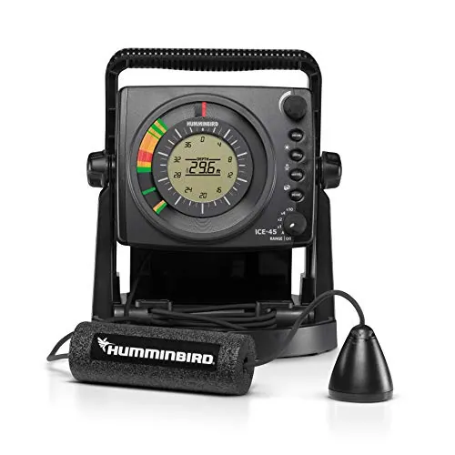Humminbird's ICE 45 ice fishing flasher uses a 3-color fiber-optic flasher with a center dial LCD display engineered for peak performance in temperatures as cold as -20xF. The LCD includes digital depth and allows the flasher to automatically adjust the depth scale, eliminating the guesswork and estimation of depth scale overlays. Rely on Humminbird ice flashers to find your spots and keep your cooler full.