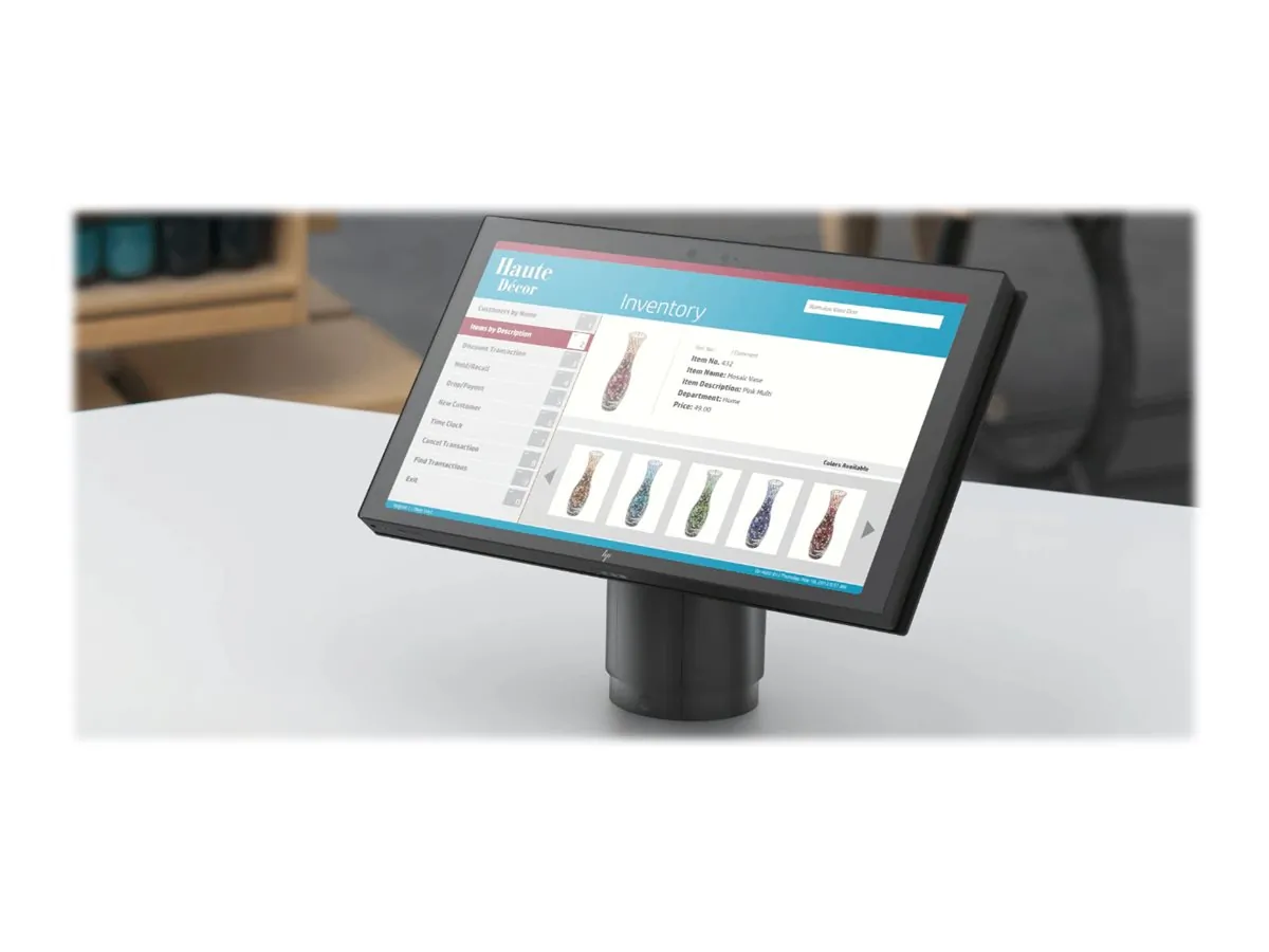 The HP Engage One Pro AIO is a versatile all-in-one solution featuring a 19" landscape display, Intel Core i5 processor, 8GB RAM, and 256GB SSD. It comes equipped with a column hub for connectivity and tilt functionality for enhanced usability.