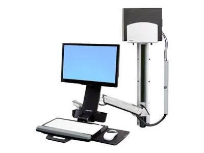 ERGOTRON STYLEVIEW SIT-STAND COMBO SYSTEM WITH MEDIUM SILVER CPU HOLDER.HOLDS A