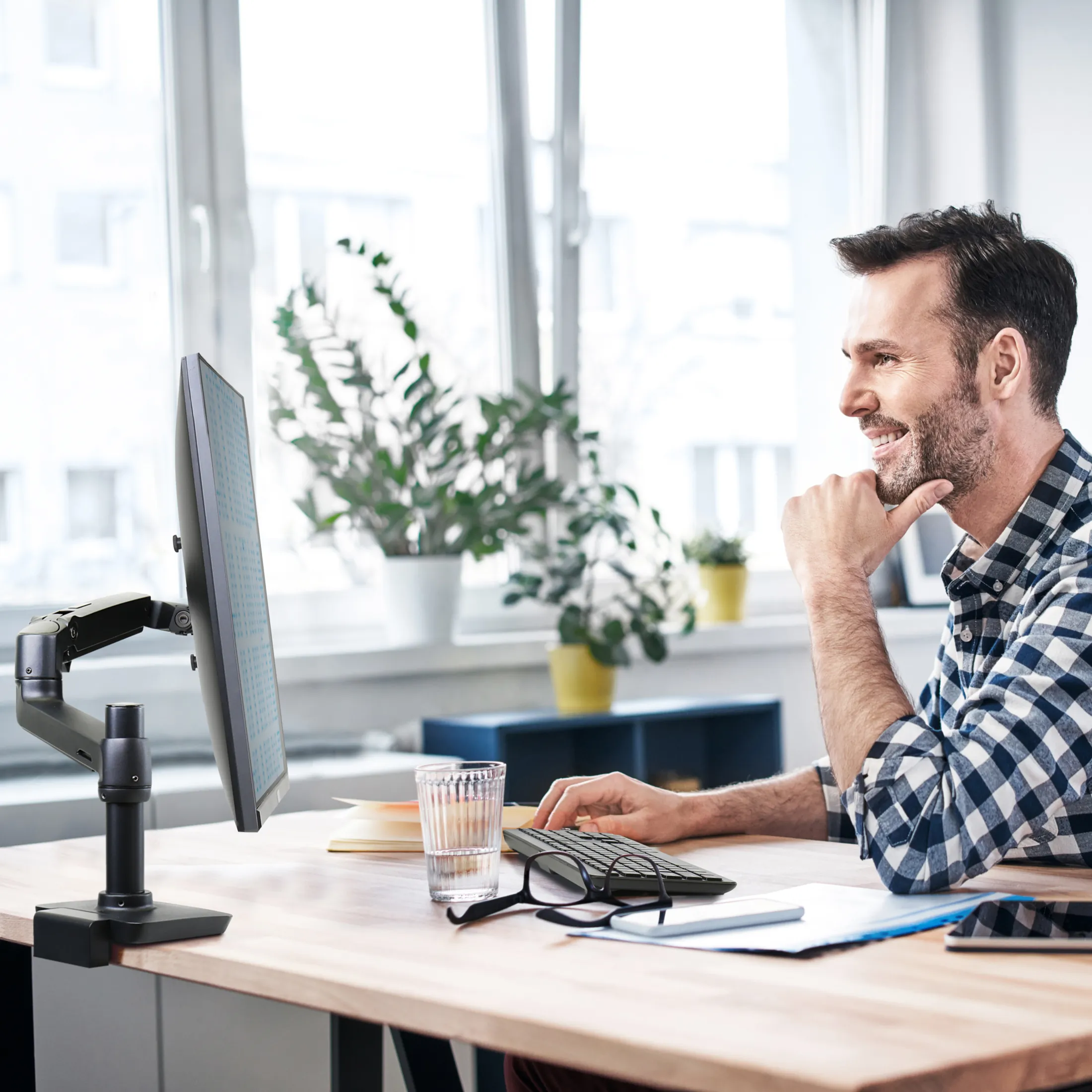 The Low Profile Clamp Desk Arm is designed to provide ergonomic support and flexibility for your workspace. Its sleek design allows for easy adjustment, helping to reduce strain during prolonged use. Perfect for monitors or laptops, this clamp arm keeps your devices at the optimal viewing height.