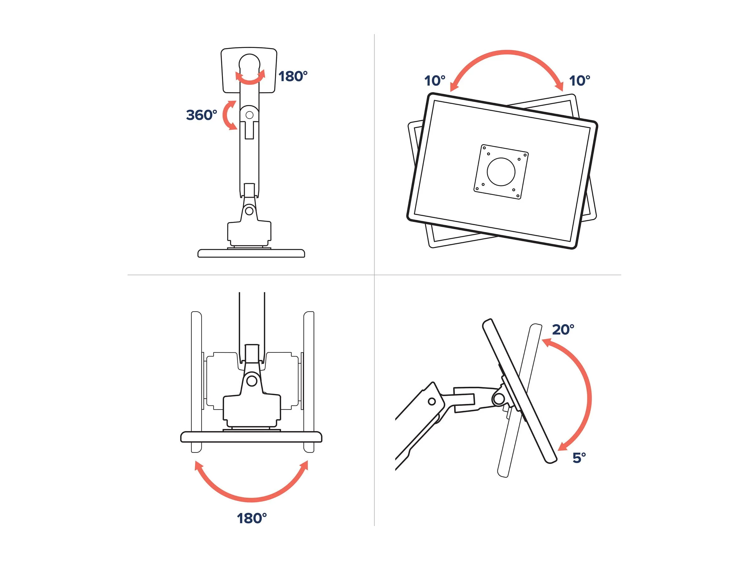 • Full pivot range for optimal viewing angles.