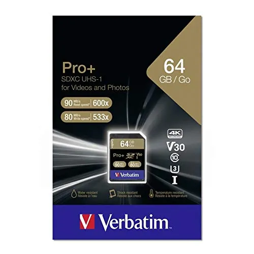 Capture more than the moment - capture the experience with this Pro Plus SDXC Memory Card. It allows the most demanding enthusiasts and exacting professionals to employ their cameras' most advanced settings. Execute continuous burst-mode photography without missing a single pixel with 80MB per second write speeds. Then use 90MB per second read speeds to facilitate faster file transfers and return sooner to shooting. Extend your creations beyond the still frame. With a UHS-I interface, U3 speed rating and V30 video speed class, Pro Plus memory cards capture seamless, cinema-quality 4K video. Safeguard all that valuable work. This 64GB card is water-resistant, shockproof and temperature-proof.
