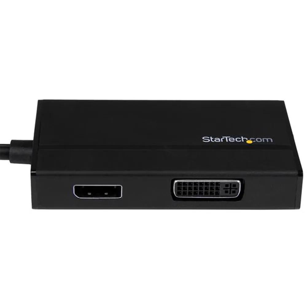 This 3-in-1adapter gives you all the video outputs youneed to connect to any projector or display.With DisplayPort,VGAand DVIoutputs, thisadapter lets you connect from your laptop's HDMI port to any boardroom or classroom display, without the inconvenience of carrying a separate adapter for each display type.