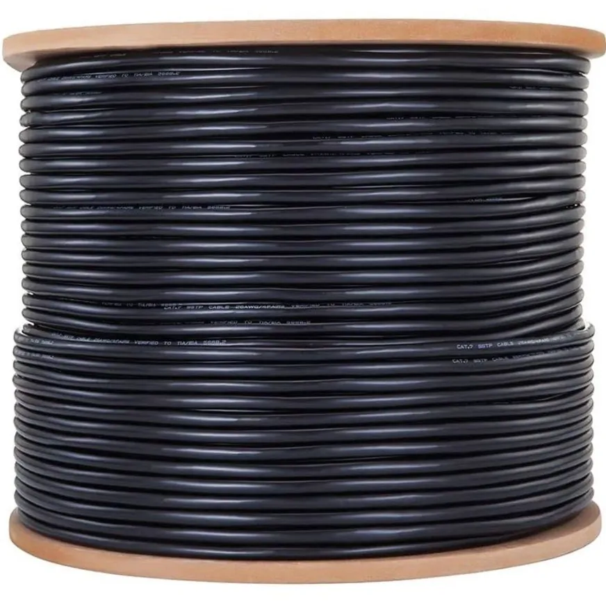 This 1000FT roll of CAT6 network cable is designed for high-speed data transmission and optimal performance. With a thickness of 24AWG, it utilizes unshielded twisted pairs (UTP) and is made from copper-clad aluminum (CCA). The black color gives it a sleek look, making it suitable for various installations.
