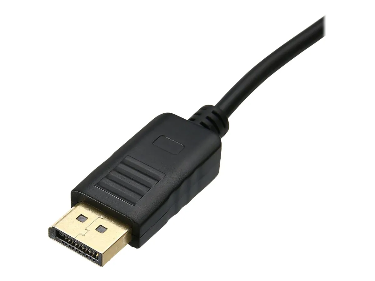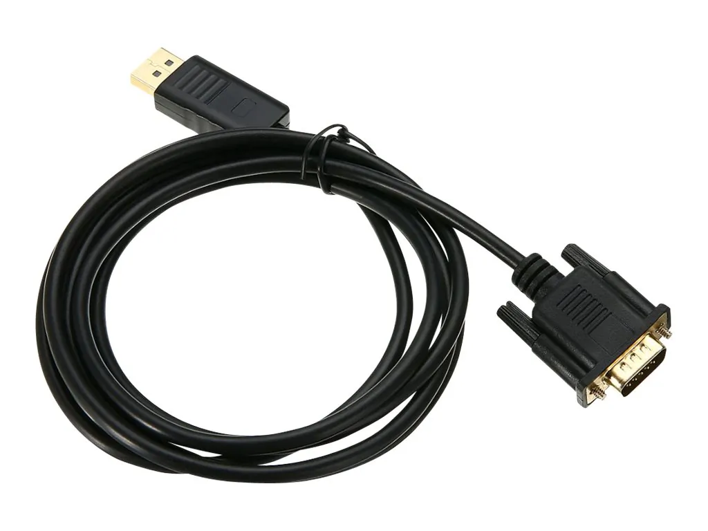 This 1.18FT Black DisplayPort to VGA Adapter Cable allows you to connect your DisplayPort-enabled device to a VGA display. Ideal for use with monitors, projectors, and other display devices that support VGA connections.